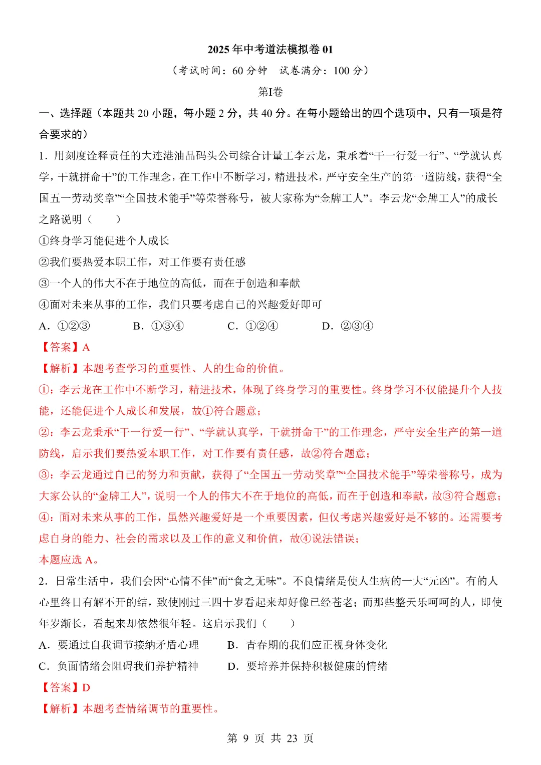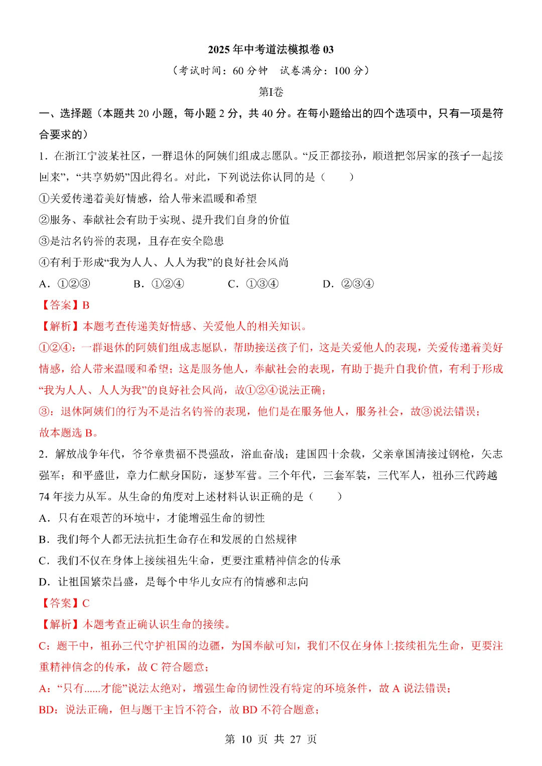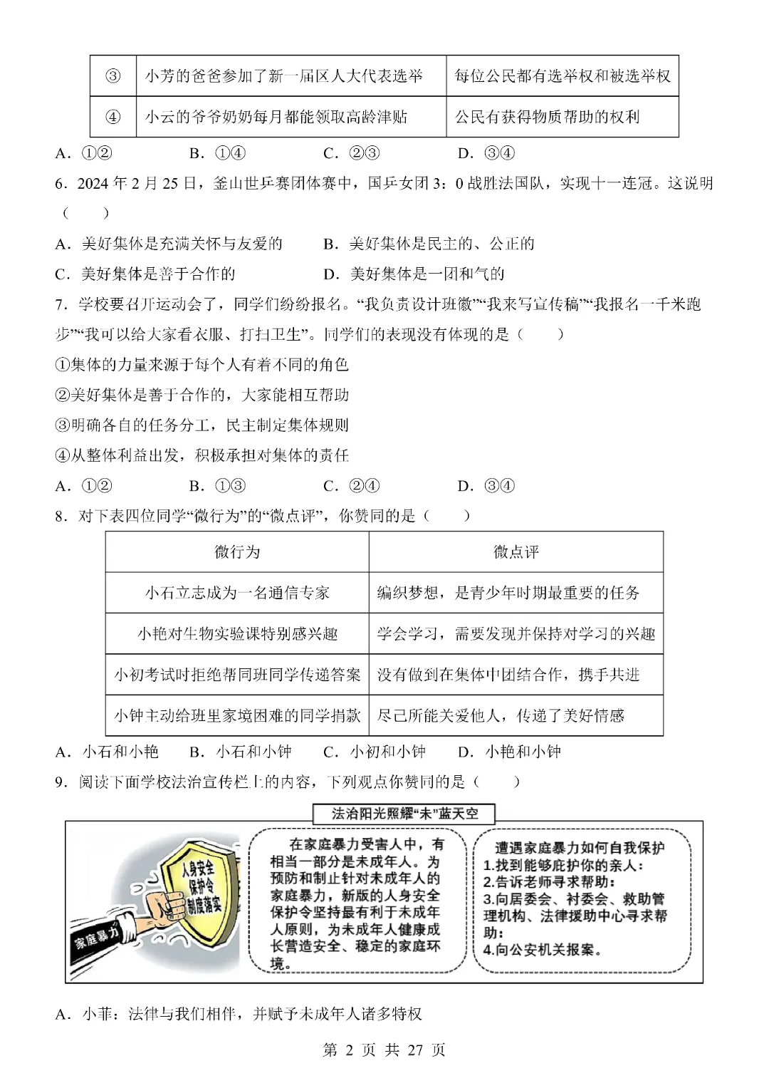 2026春统编版九年级下册道德与法治《期中考试模拟卷 2卷》,含详细答案共54页,电子版可打印可下载。围绕初三下册课本,帮助孩子夯实学科基础,培养孩子逻辑思维,提升知识综合运用能力与应试技巧,助力升学能力培养,从从容容的度过春季学期。欢迎转发分享到班级群, 需要的家长们和老师们抓紧领取一份吧。