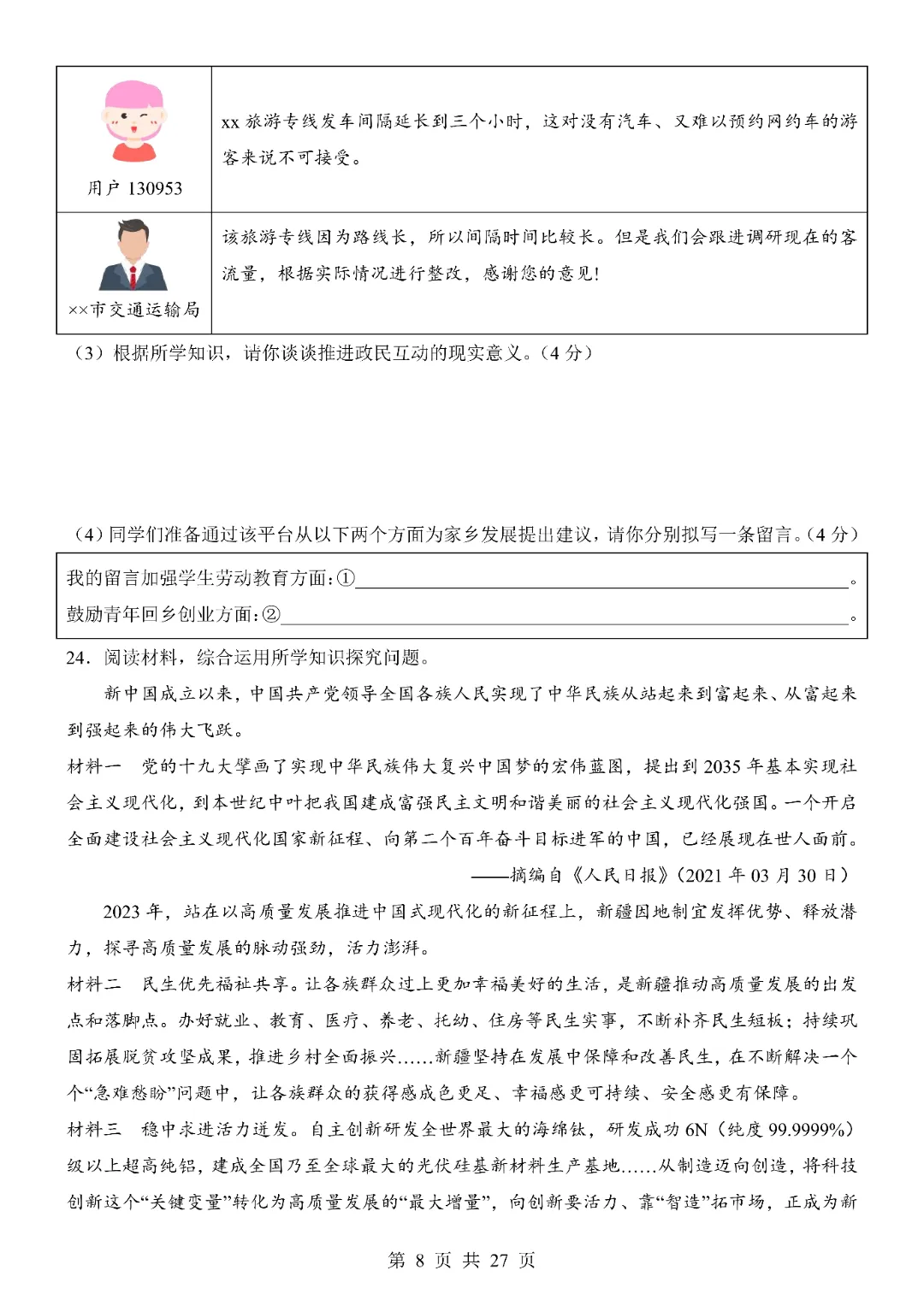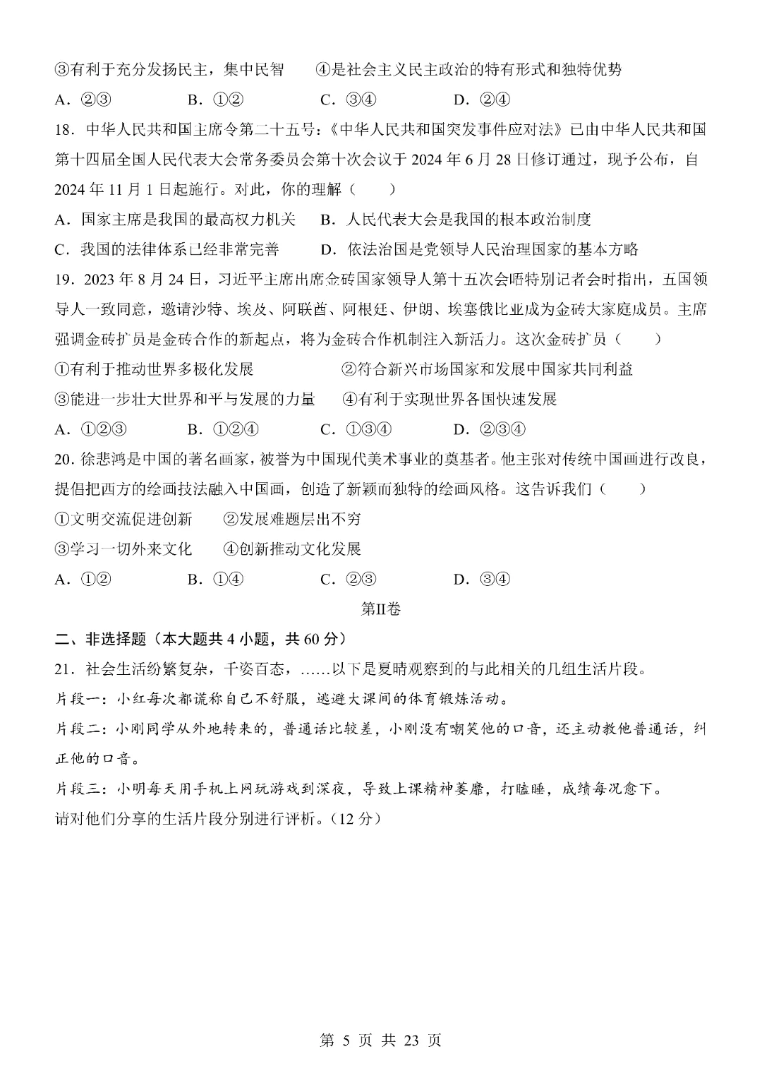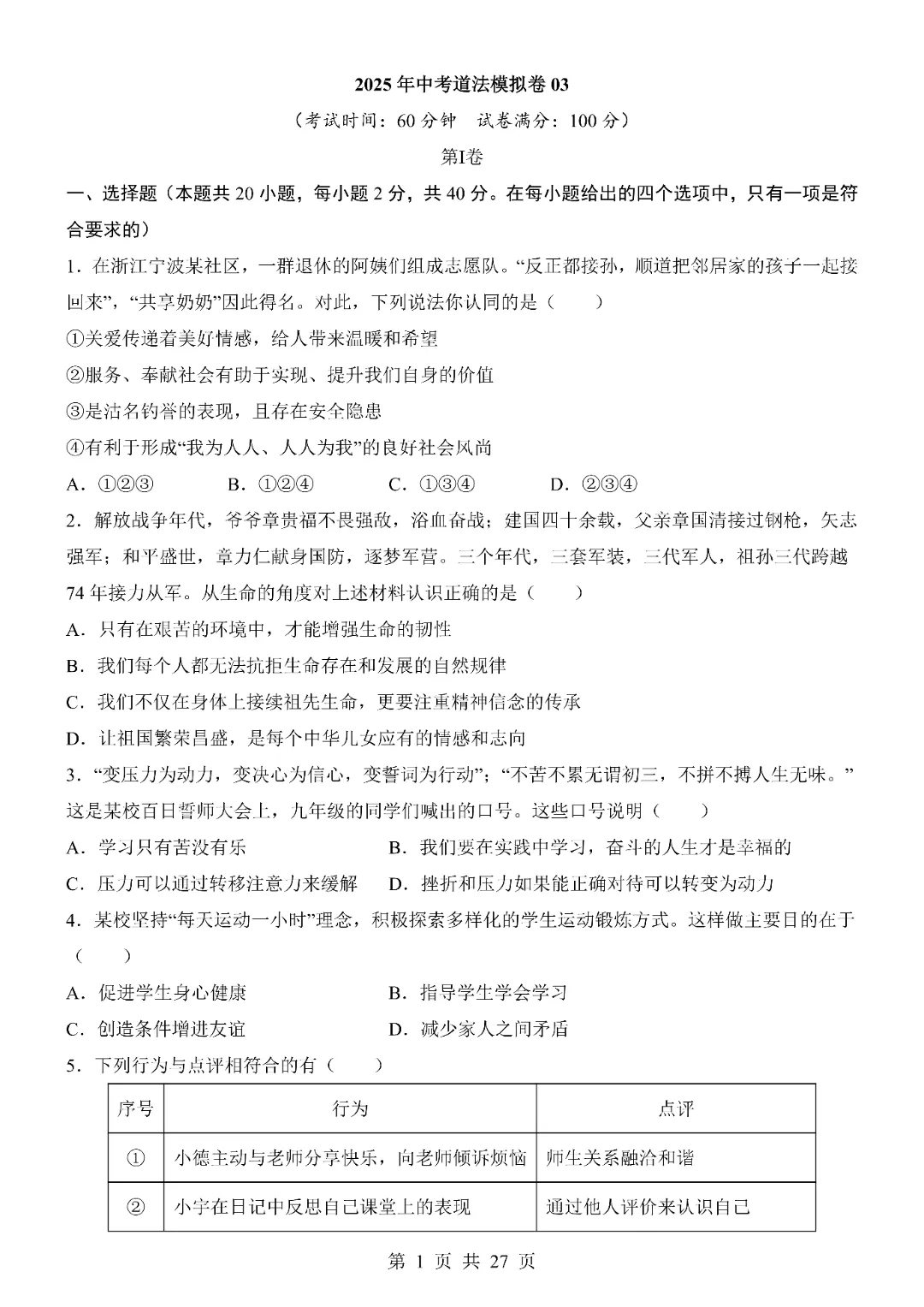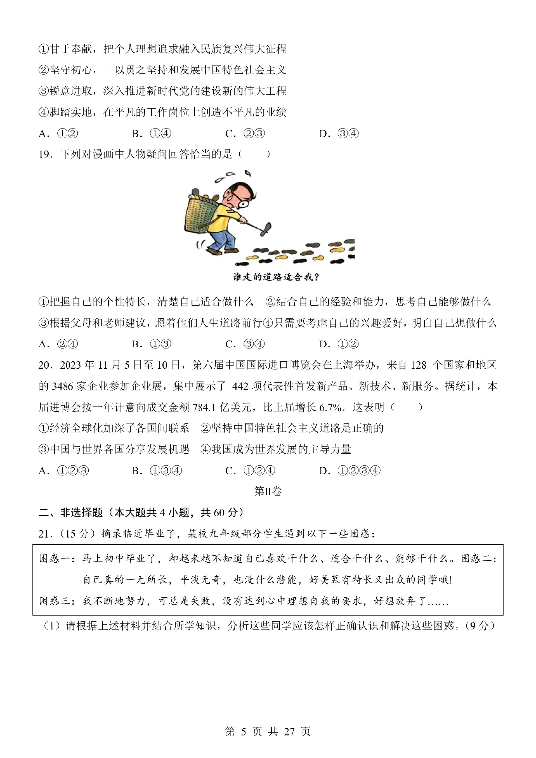 2026春统编版九年级下册道德与法治《期中考试模拟卷 2卷》,含详细答案共54页,电子版可打印可下载。围绕初三下册课本,帮助孩子夯实学科基础,培养孩子逻辑思维,提升知识综合运用能力与应试技巧,助力升学能力培养,从从容容的度过春季学期。欢迎转发分享到班级群, 需要的家长们和老师们抓紧领取一份吧。