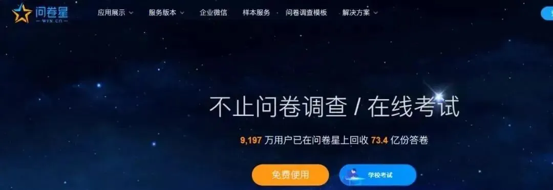 问卷星是一个专业的在线问卷调查、测评、投票平台,专注于为用户提供功能强大、人性化的在线设计问卷、采集数据、自定义报表、调查结果分析系列服务。与传统调查方式和其它调查网站或调查系统相比,问卷星具有快捷、易用、低成本的明显优势,已经被大量企业和个人广泛使用。