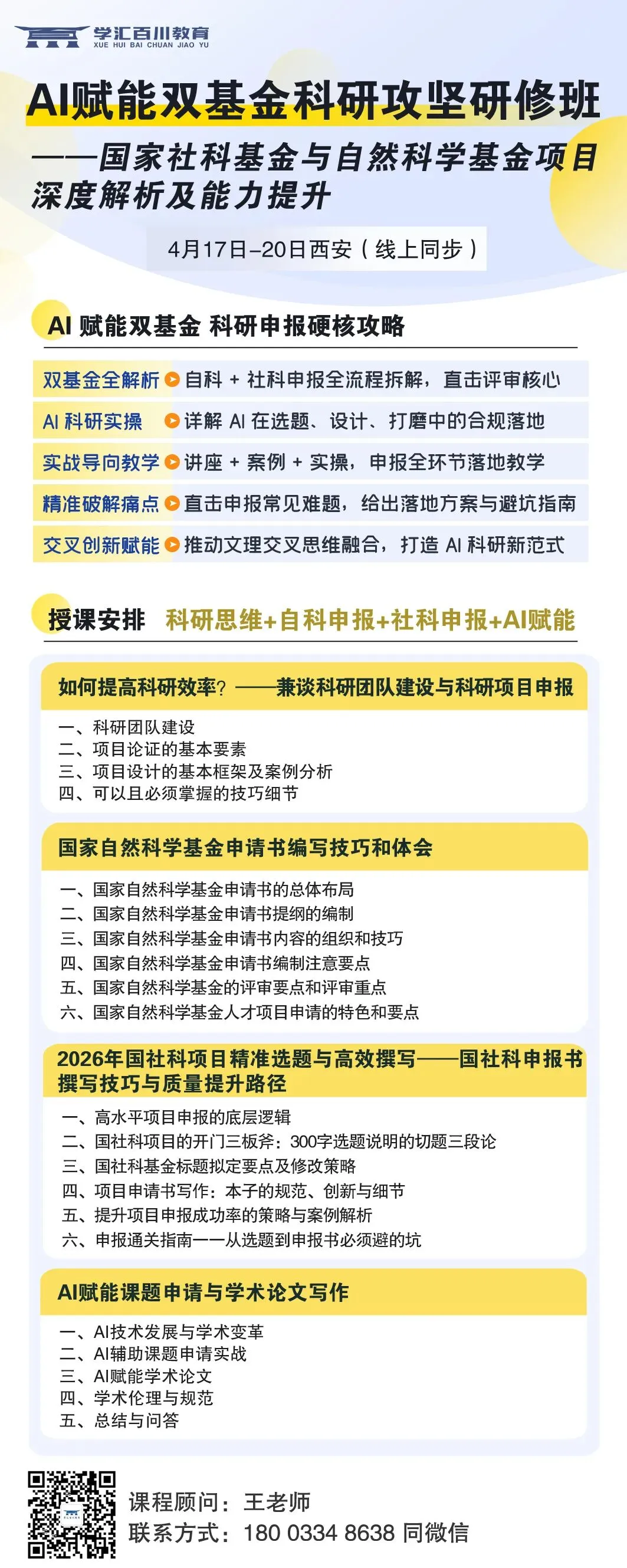 【4月17日-20日•西安】AI赋能双基金科研攻坚研修班——国家社科基金与自然科学基金项目深度解析及能力提升