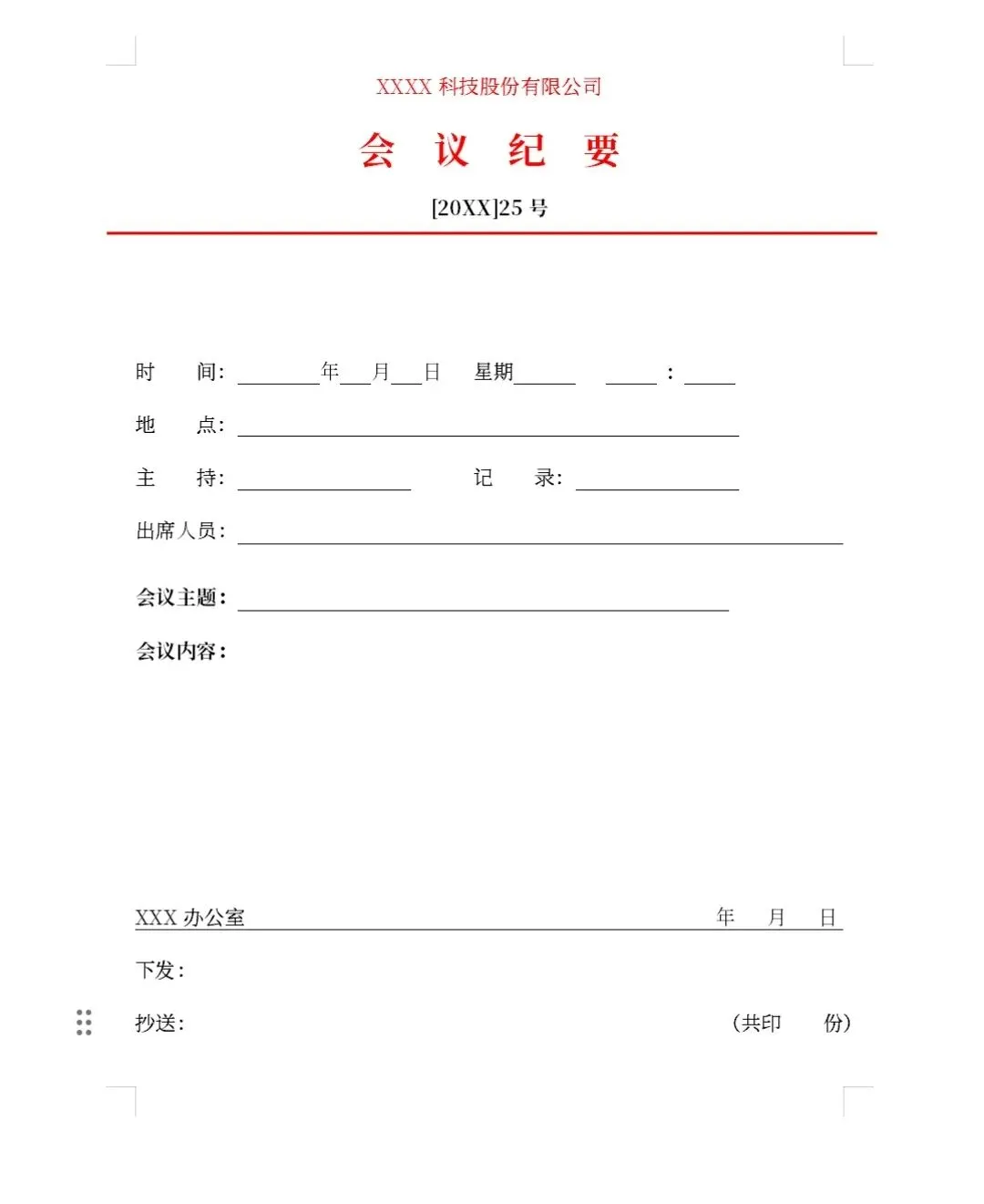 适合各行业会议记录表格模版(免费下载 编辑 打印)