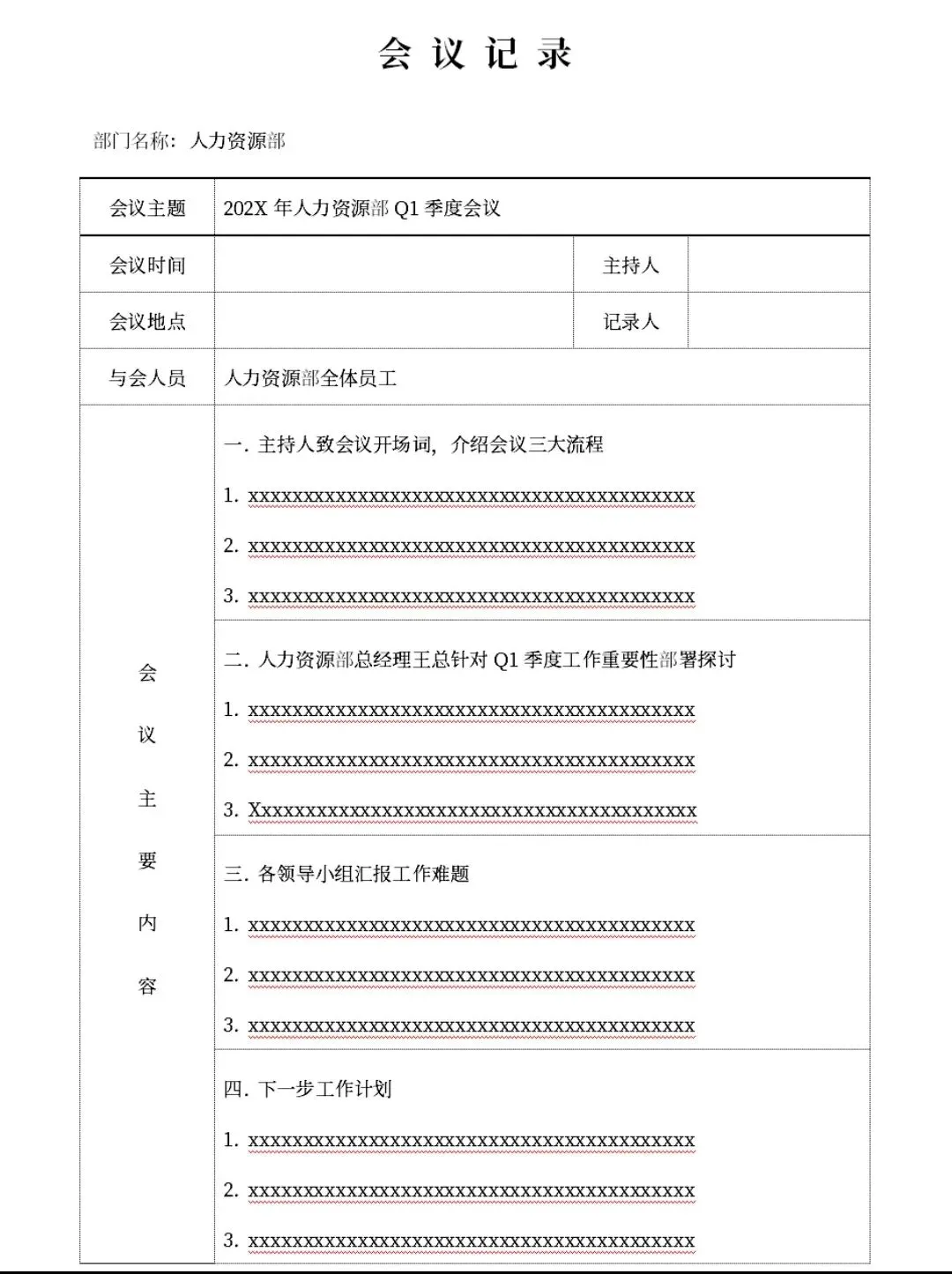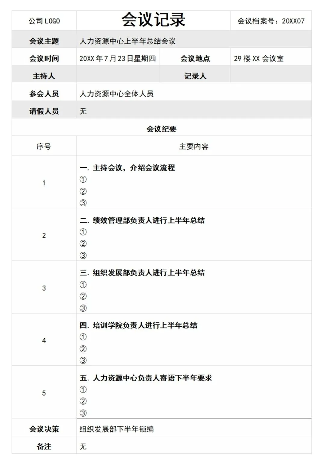 本文分享的是【各行业会议记录模板】