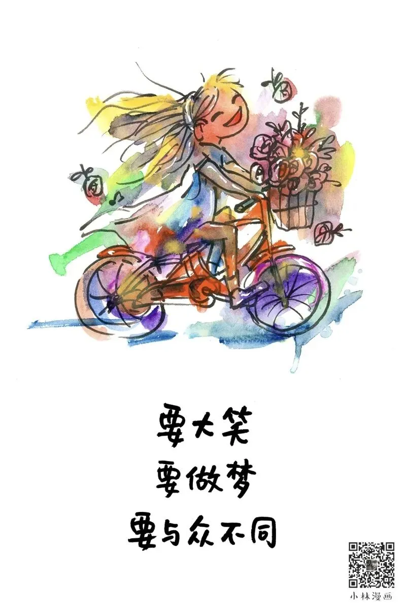 要做梦,要大笑,要与众不同。1要对这个世界充满友好,相信各种美好的事物即将发生。现实是残酷的,如果总是和柴米油盐打交道,神仙也会变老。对抗平庸的最好武器,就是去做梦,畅想那些美好的事物,去经历最精彩的故事,认识最有趣的人,做最酷的事,而这一切都源自于梦想。所以,去做梦是一件了不起的事情。2要大笑。笑是人后天习得的,先天会的其实是哭。人在哭声中来到这个世界,也在哭声中离开,已经够苦难了。所以在这中间,我们要微笑、大笑、狂笑。遇到开心的事情要笑,遇到难过的事情要自嘲,用笑声化解尴尬。朋友离别时,我们不要哭,要笑,用笑声留下最美好的记忆。人生苦难,我们不要哭,要笑,因为苦难之后会让我们更懂得珍惜。很多场景都提醒我们,要笑,用我们的力量去与这个世界抗衡。3我们要与众不同,这是我最想不明白,也是最想做到的事情。我就是我,不一样的烟火。在这个世界上,唯独只有我一人,其他任何人都是别人,不是我。我和别人不一样,我有自己的想法,我与众不同。 END 【关于作者】小林(林帝浣)立志做摄影界书法最美的段子手,漫画界文笔最好的美食家,然而小林毕业于临床医学系。著作《小林漫画:在人间》《拥抱温暖,万事如愿》《陪广州慢慢变老》《小林生活禅》《人间逍遥游》《人间烟火气》《人间治愈术》《等一朵花开》《初相遇·若重逢》《万物之中,希望至美》《凡是过去,皆为序幕》《时光映画——镜头中的二十四节气》《我想给你拍张照》等。妙爸一个有意成为画画爱好者,却没有天赋的人。恰好在AI的助力下,有了这样的机会,开始做自己想做的事情。图片来自于公众号“小林”,侵删。