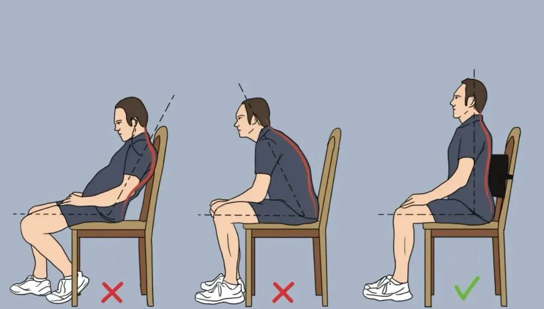 腰背有靠:腰后必须垫个靠枕,填补腰椎与椅背的空隙,维持腰椎前凸。拒绝“葛优瘫”。
