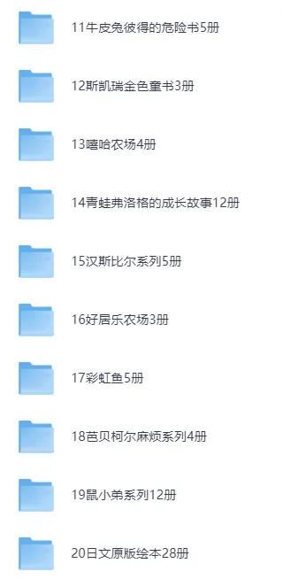 国内外儿童经典绘本1500本PPT电子版 |文末免费领取 经典绘本1500本PPT电子版免费领取 版面有限,只展示部分内容 完整电子版领取方法: 1、关注公众号“中小学生宝库”2、点击发消息,发送关键字:绘本