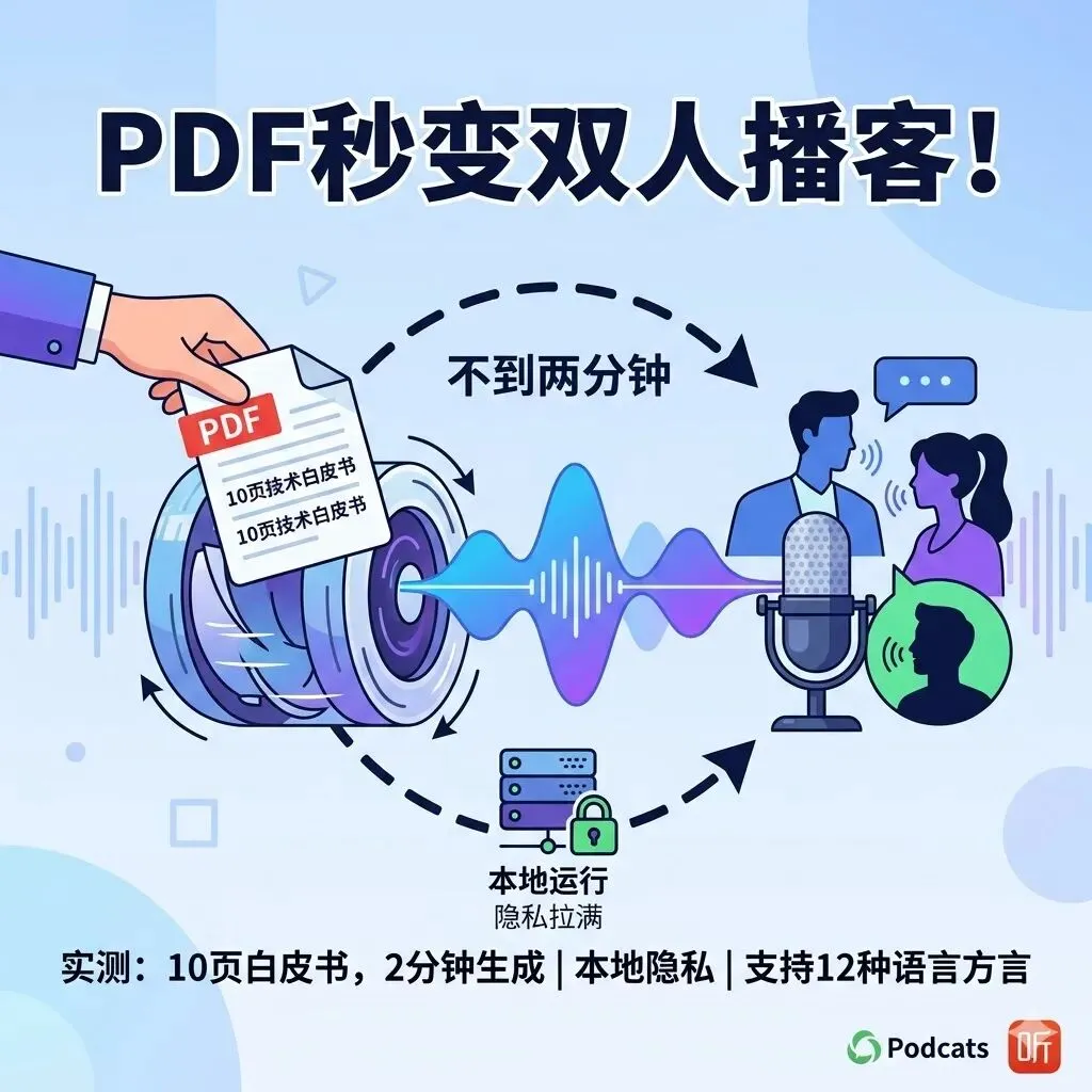 我把任意PDF扔进去,这款免费开源神器瞬间变出双人AI播客,本地运行,隐私拉满.