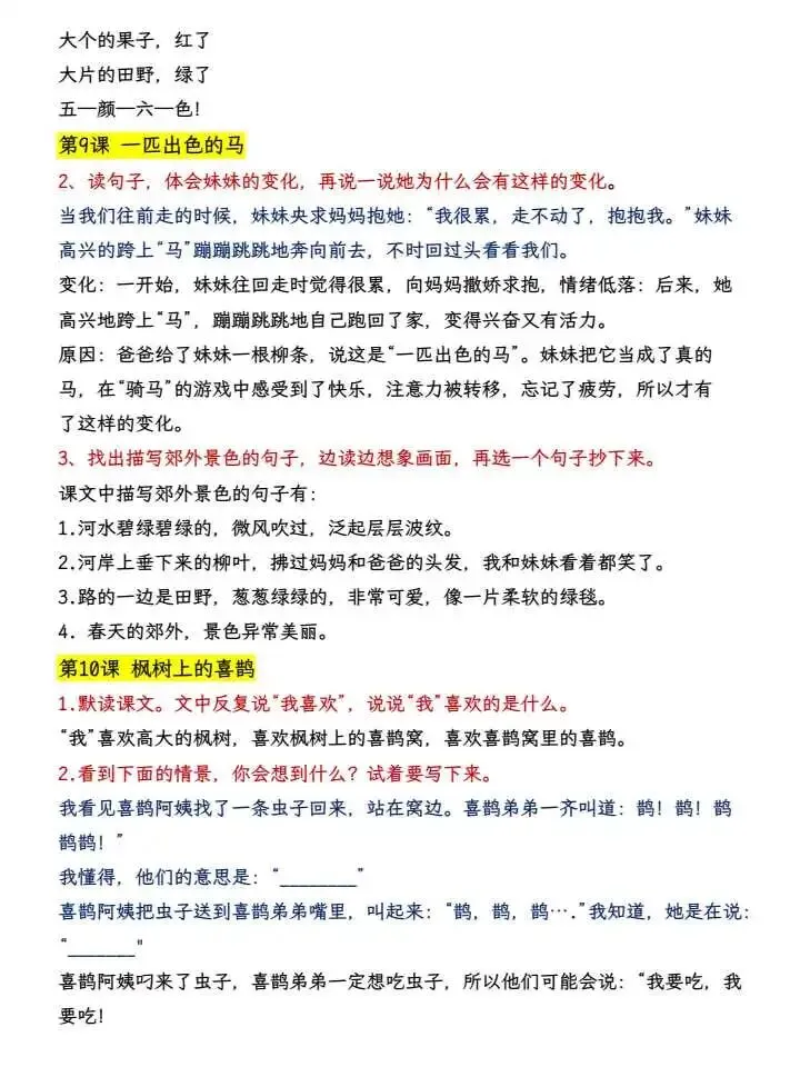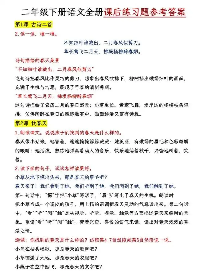 26春二年级下册语文课后练习题答案(电子版可打印)