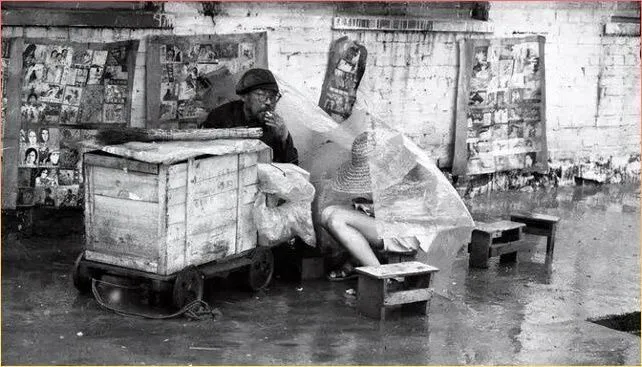 这张照片更有意.思了,一位.卖报的大爷守着他的小摊位,身后贴满.了各种画报和报纸。年轻.的.朋友们可能.不知道,那会儿买份报纸,翻翻.杂志,就.是.我们获取信息的主要渠道。