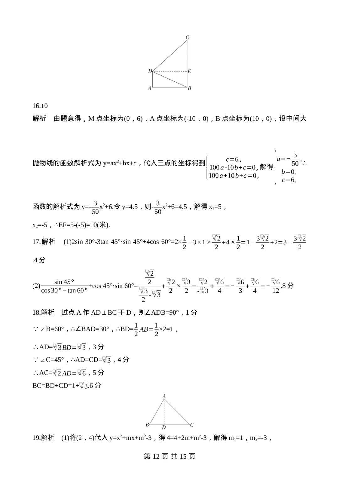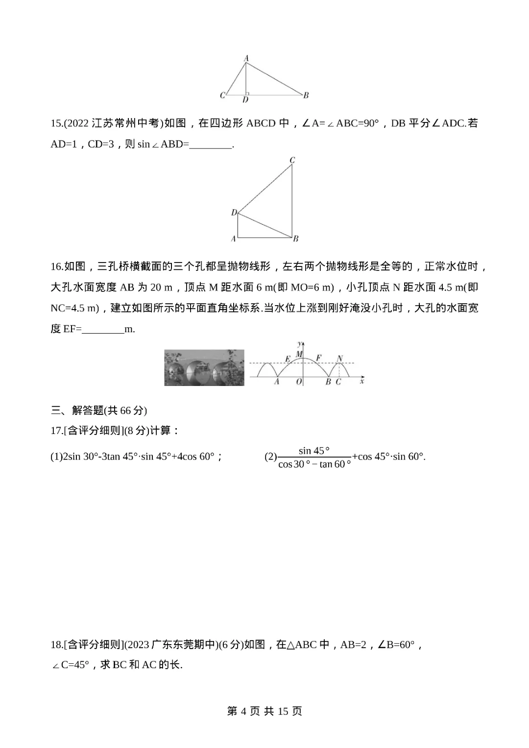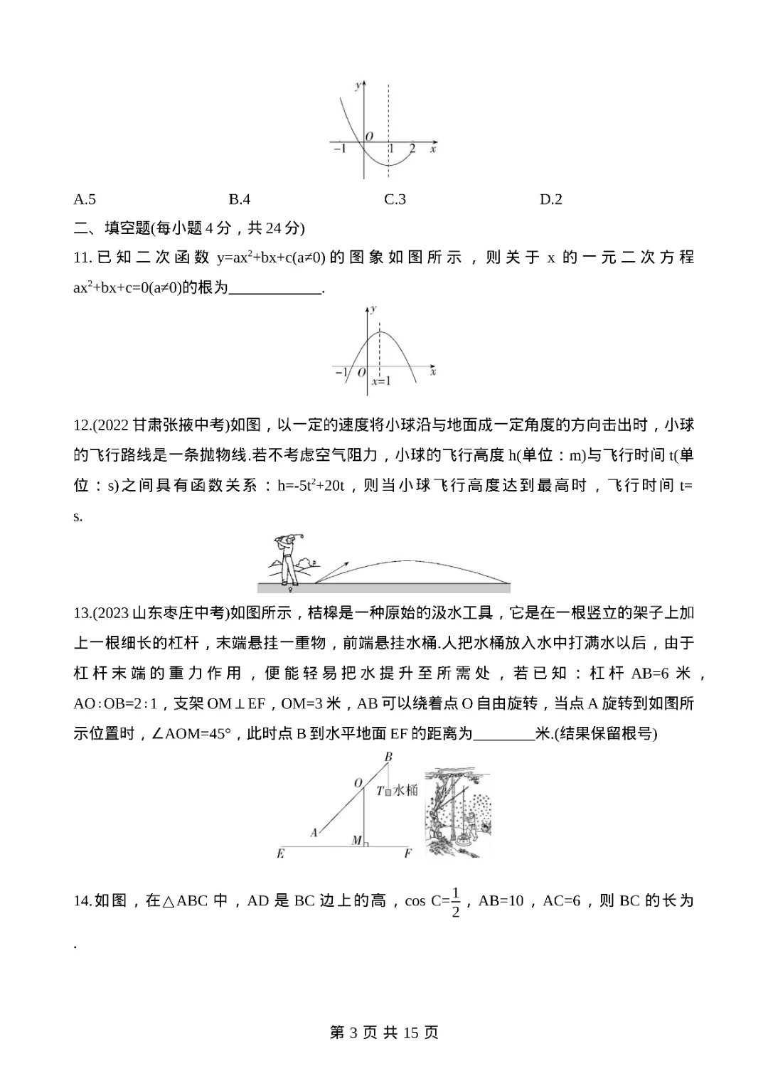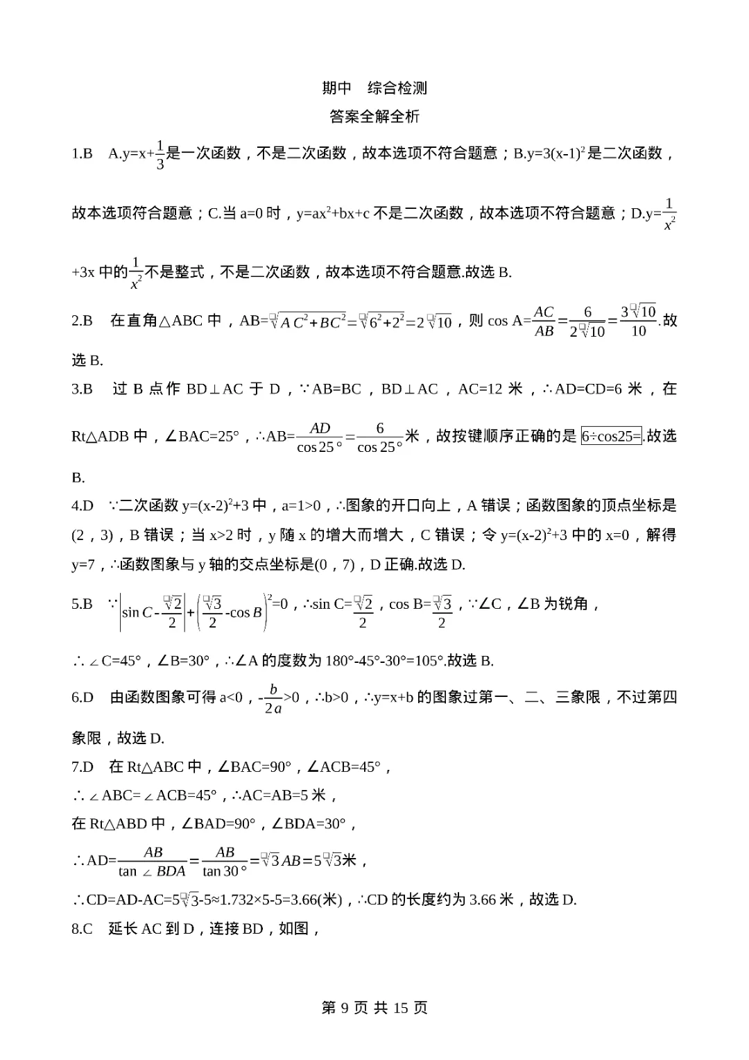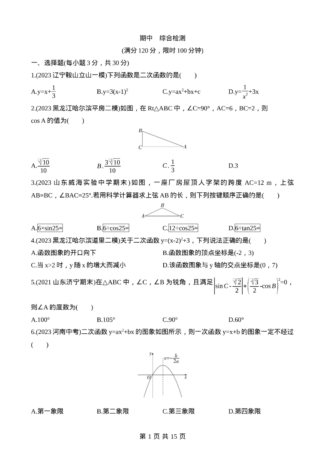 2026年九年级下册数学期中测试卷,完整电子版可打印。