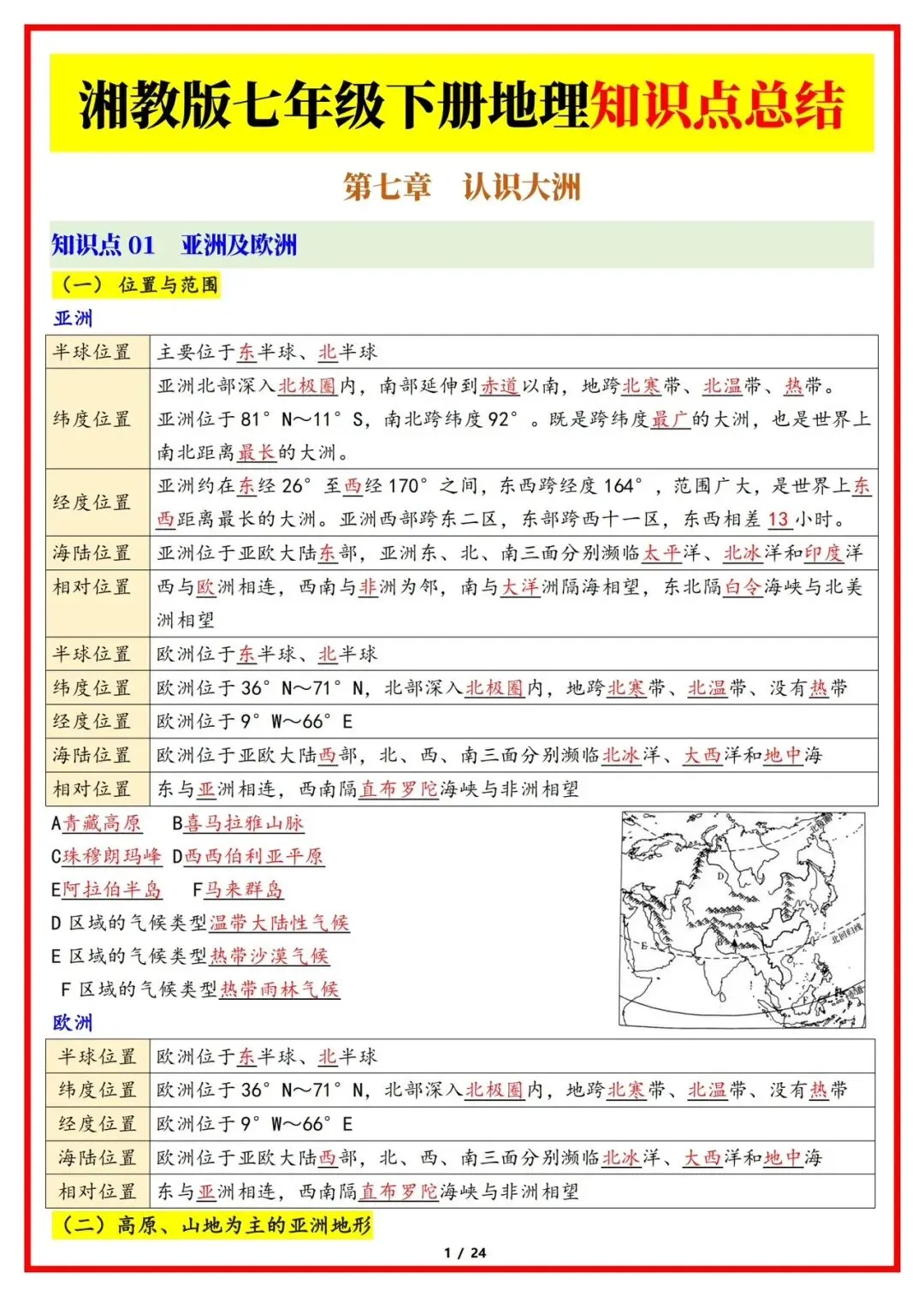2026版七年级下册湘教版地理知识点梳理总结,可打印电子版!