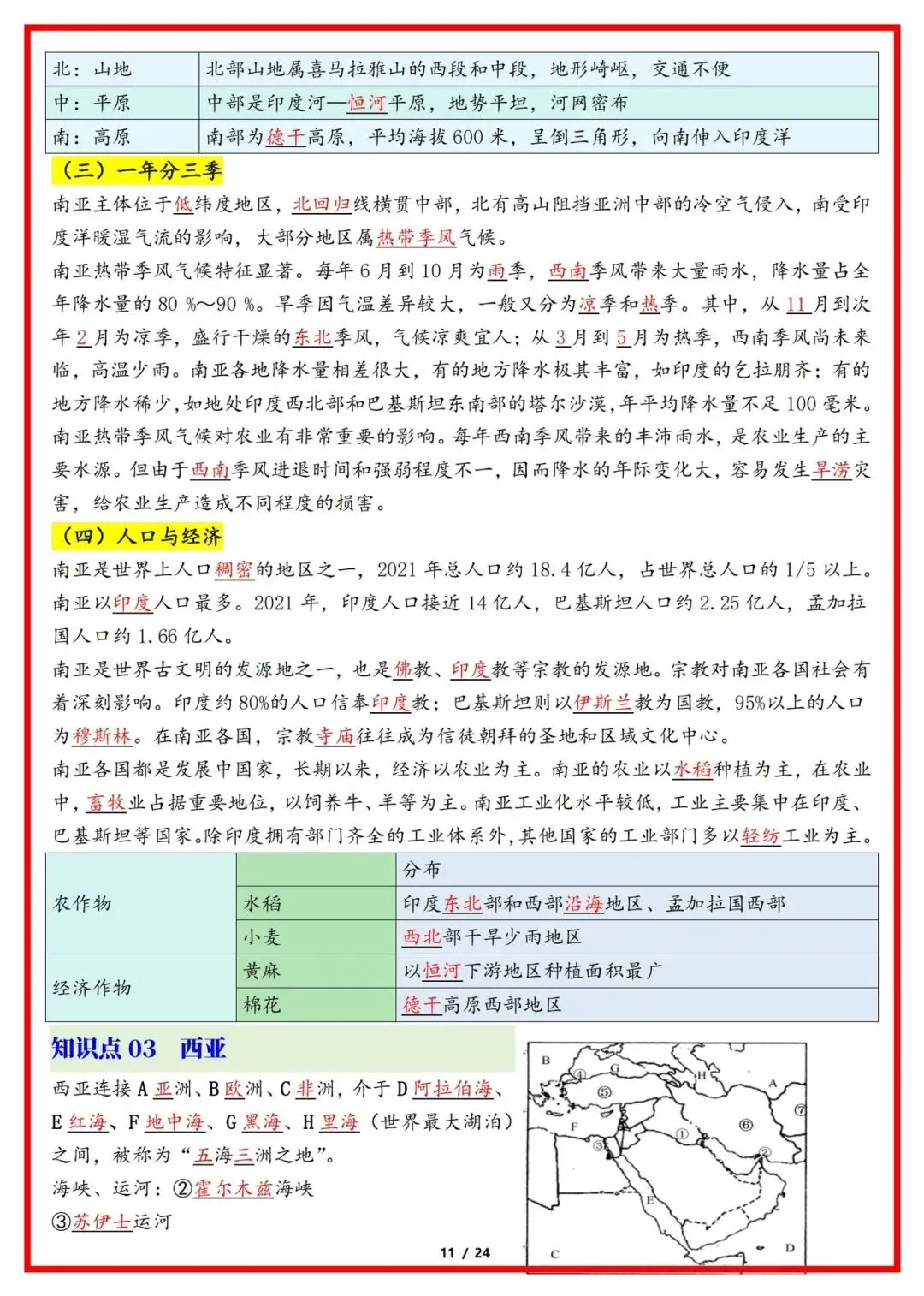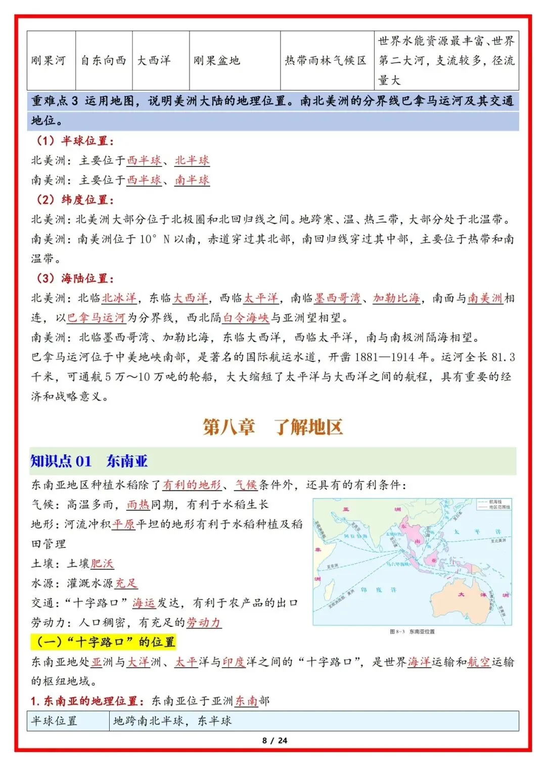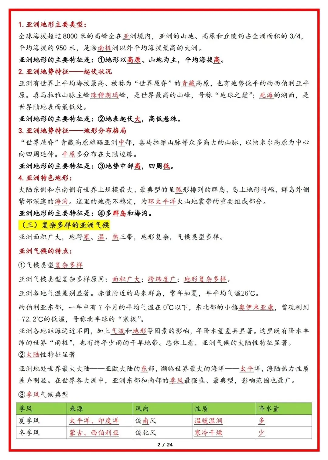 大家好,今天老师整理了:2026版七年级下册湘教版地理知识点梳理总结,可打印电子版!