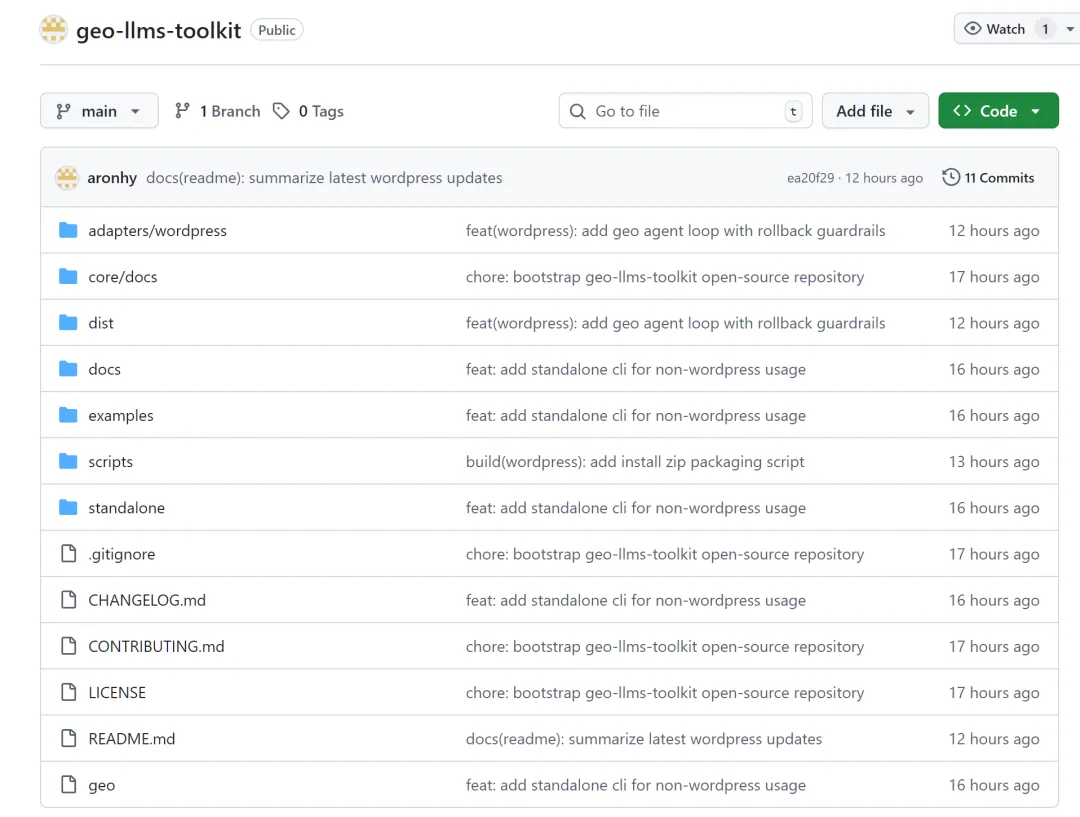 git clone https://github.com/aronhy/geo-llms-toolkit.gitcd geo-llms-toolkitchmod +x geo./geo --help