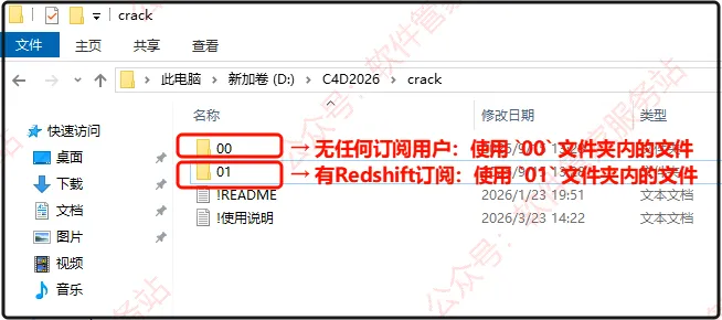 第十一步:打开后里面有两个文件夹,没有任何订阅的用户,使用【00】文件夹里的文件,有Redshift订阅的,使用【01】文件夹里的文件。