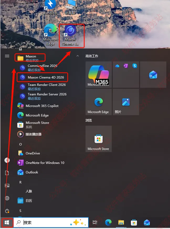 第十三步:依次点击【开始】-【Maxon】-【Maxon Cinema 4D 2026】,将其拖到电脑桌面。