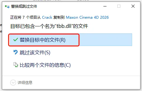 第十六步:选择【替换目标中的文件】。