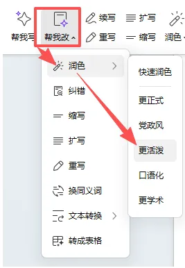 帮我改这一模块还包含多种润色选项。我们可以继续测试,让 AI 将已生成的作文修改为更加活泼的语言风格。