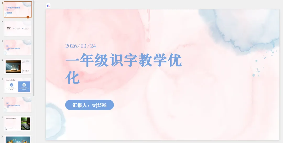 Wps AI生成PPT速度也非常快,眼看电脑自动操作,很快 PPT 就制作完成,整体效果清晰美观。