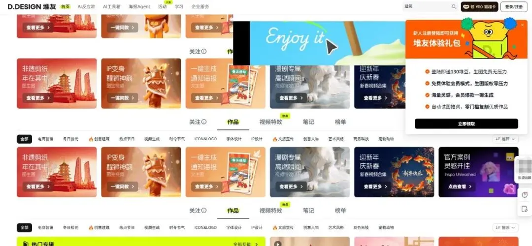 热点与专辑:官网按主题(如春节、情人节、年货)和风格(如毛绒风、建筑转绘)整理了大量作品专辑,方便用户浏览最新、最热的设计趋势和灵感。