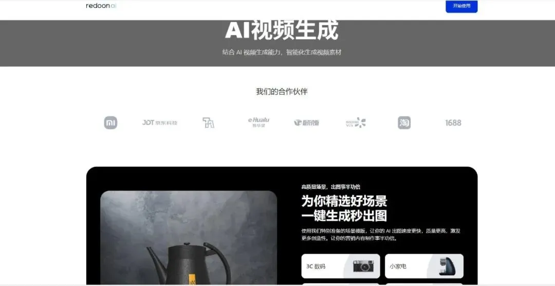 AI视频一键生成:能快速生成特定主题视频(如官网展示的“马年创意视频”),并支持图生视频、电商视频等垂直场景。
