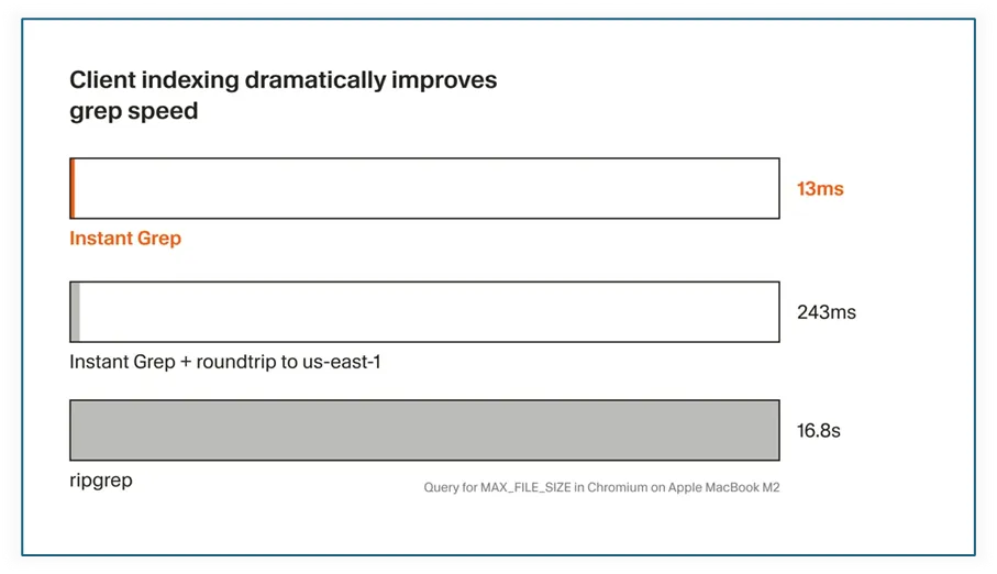 这篇博文讲述如何构建 Instant Grep 的,包括设计背后的算法和权衡取舍。https://cursor.com/blog/fast-regex-search