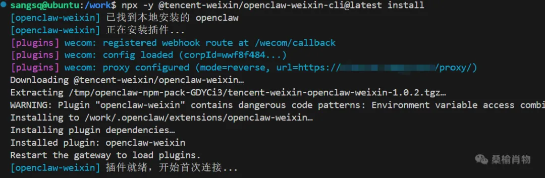 # 在OpenClaw设备上运行npx -y @tencent-weixin/openclaw-weixin-cli@latest install