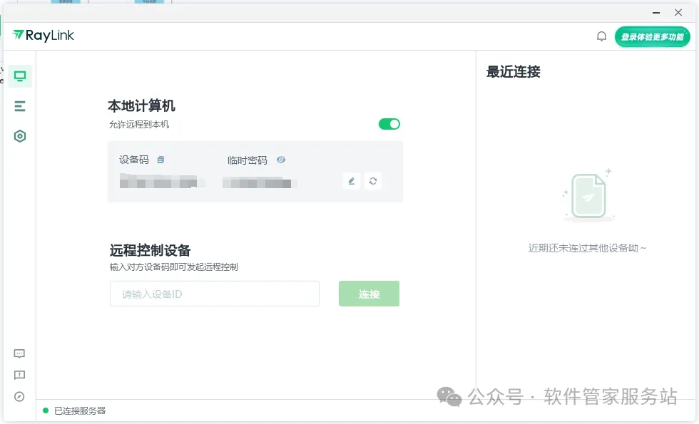 | RayLink远程软件是一款比较常用的远程工具,它客户端和服务器端是分开的,即客户端运行后不需要注册即可使用。本平台所提供的文件均为压缩文件,如果电脑上没有此软件,可提前下载安装。 | |
