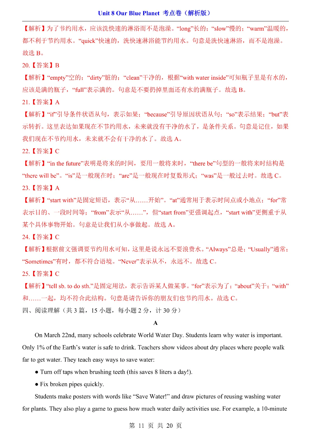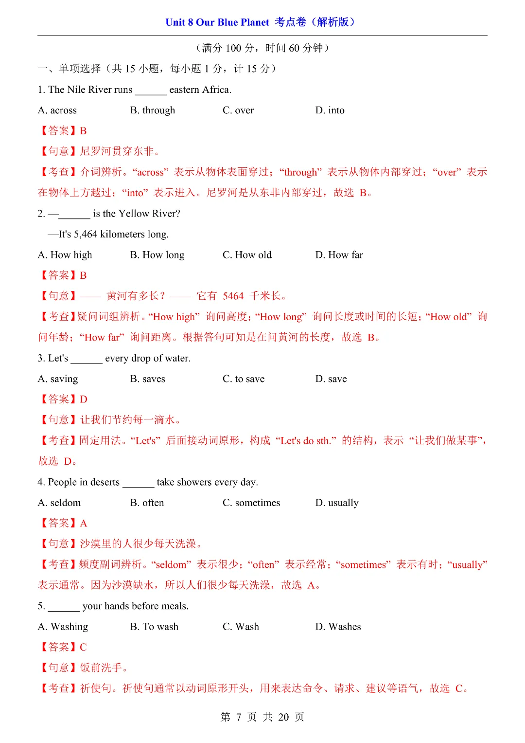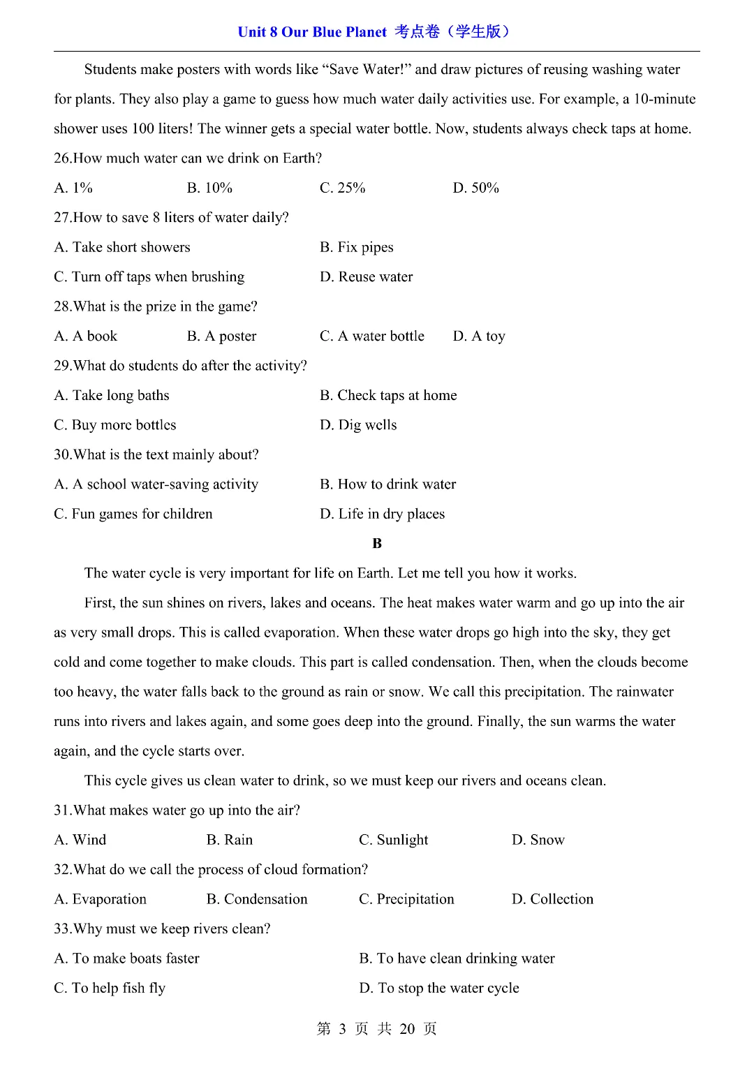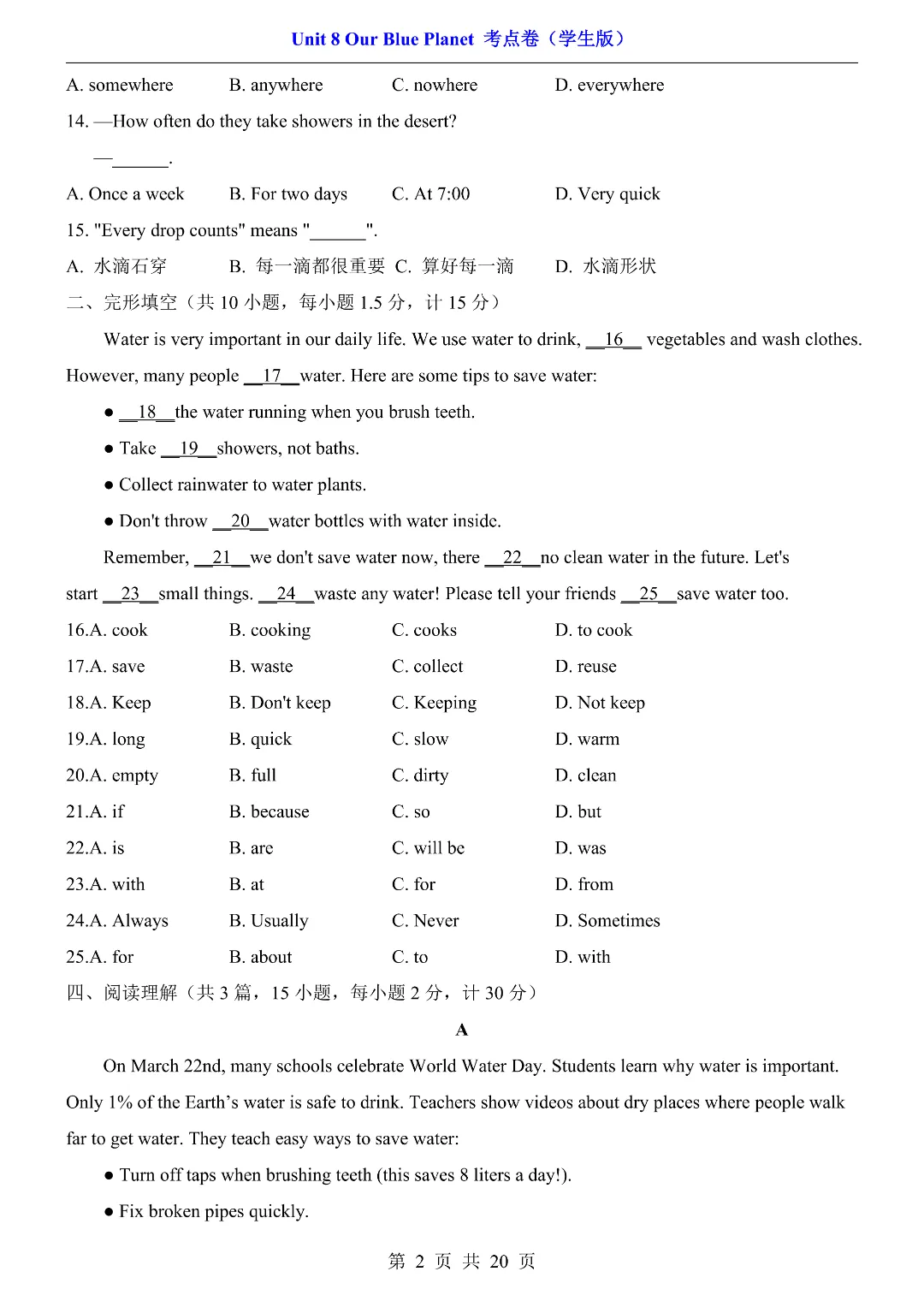 ✨今日给家长朋友们分享的是:2026年春新初中七年级下册仁爱版英语《第8单元综合测试卷 含答案》电子版可打印