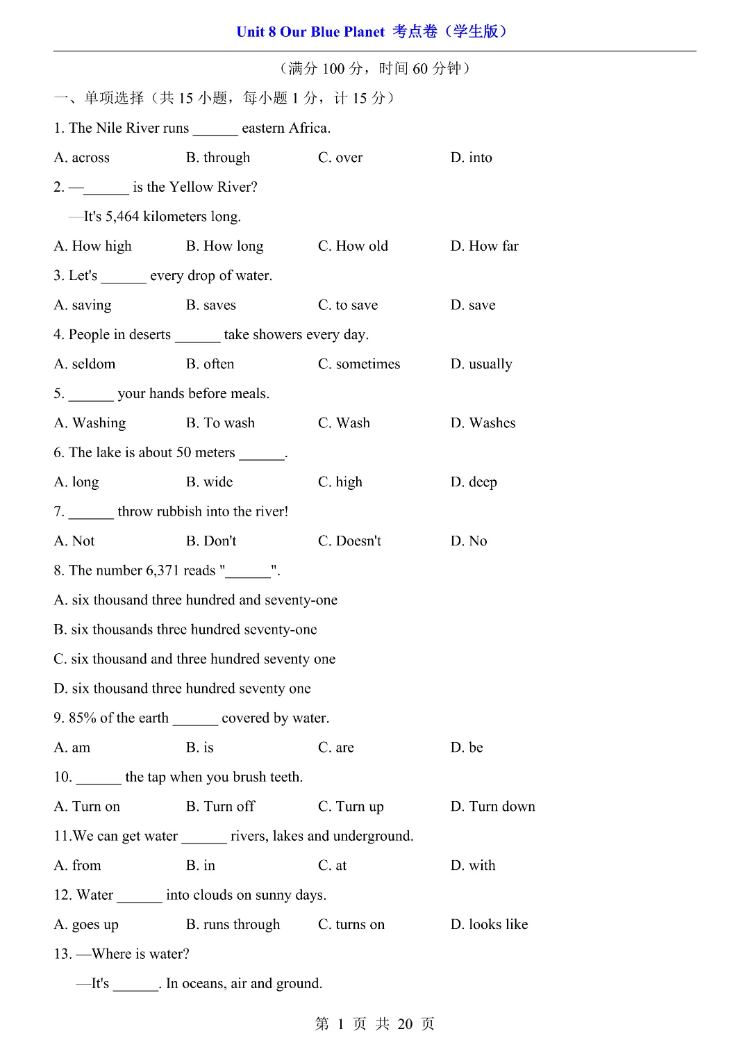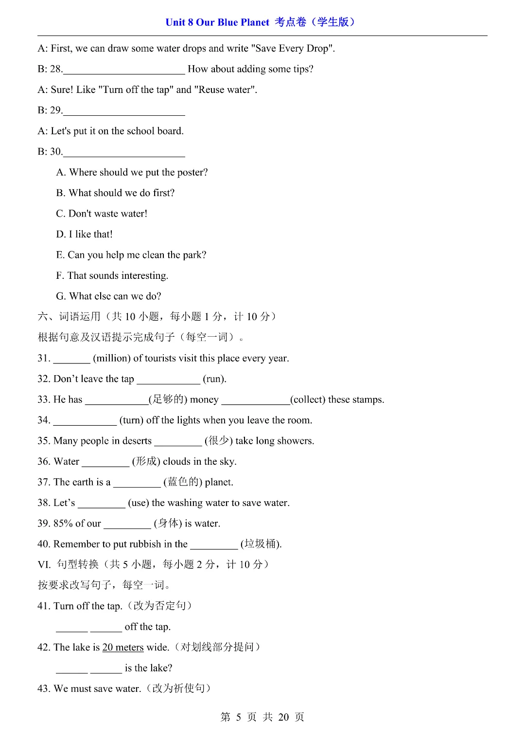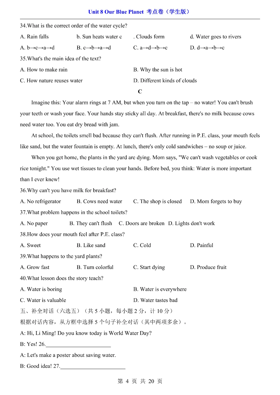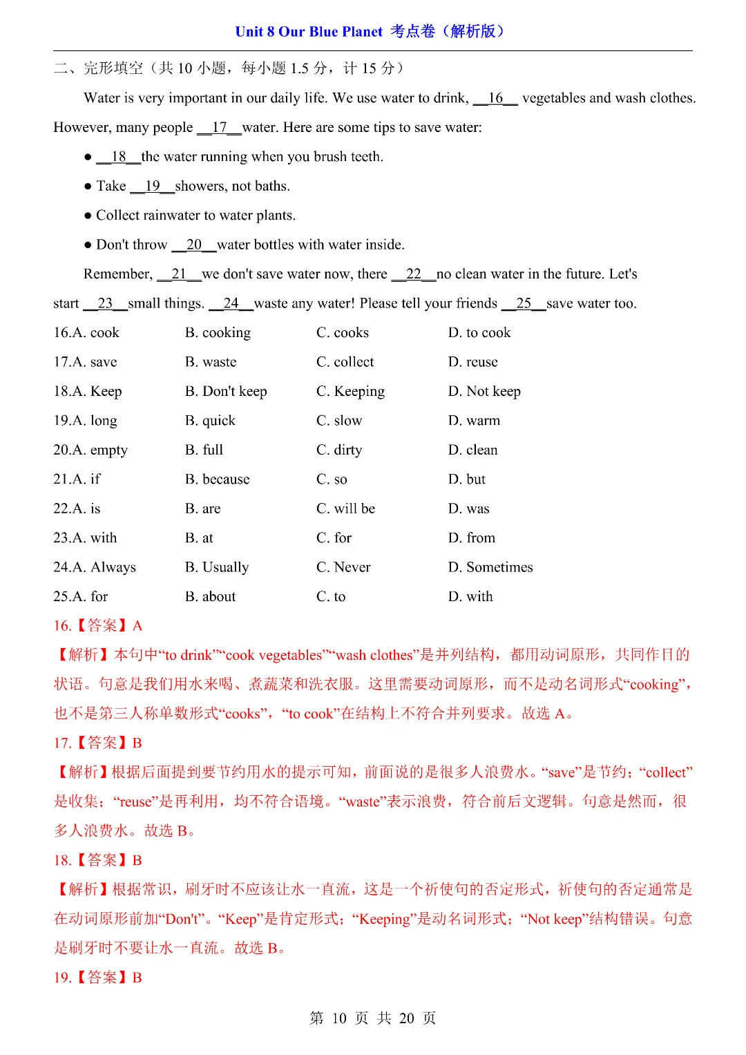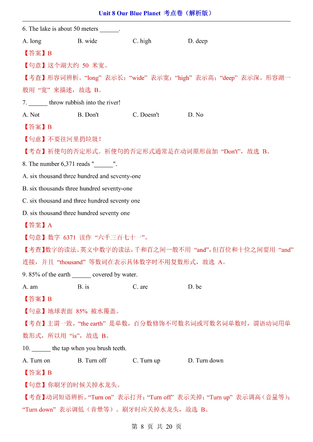 ✨今日给家长朋友们分享的是:2026年春新初中七年级下册仁爱版英语《第8单元综合测试卷 含答案》电子版可打印