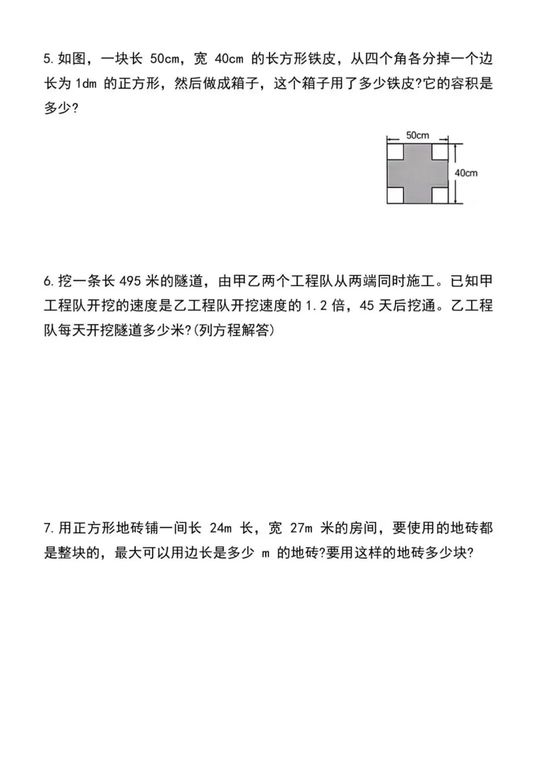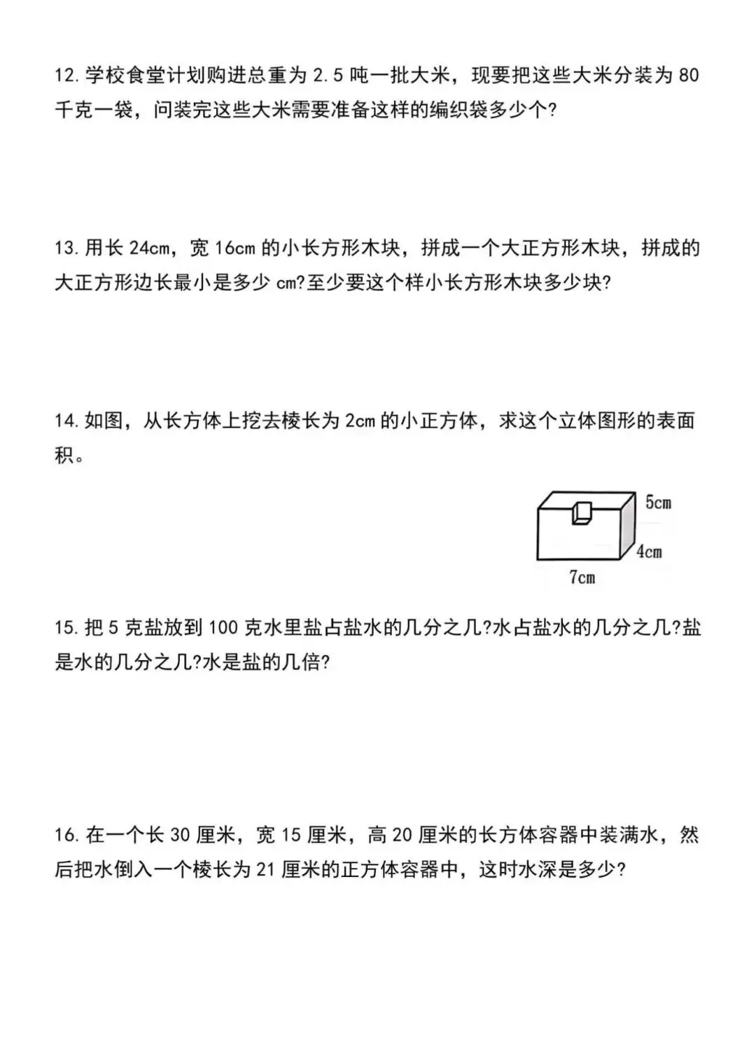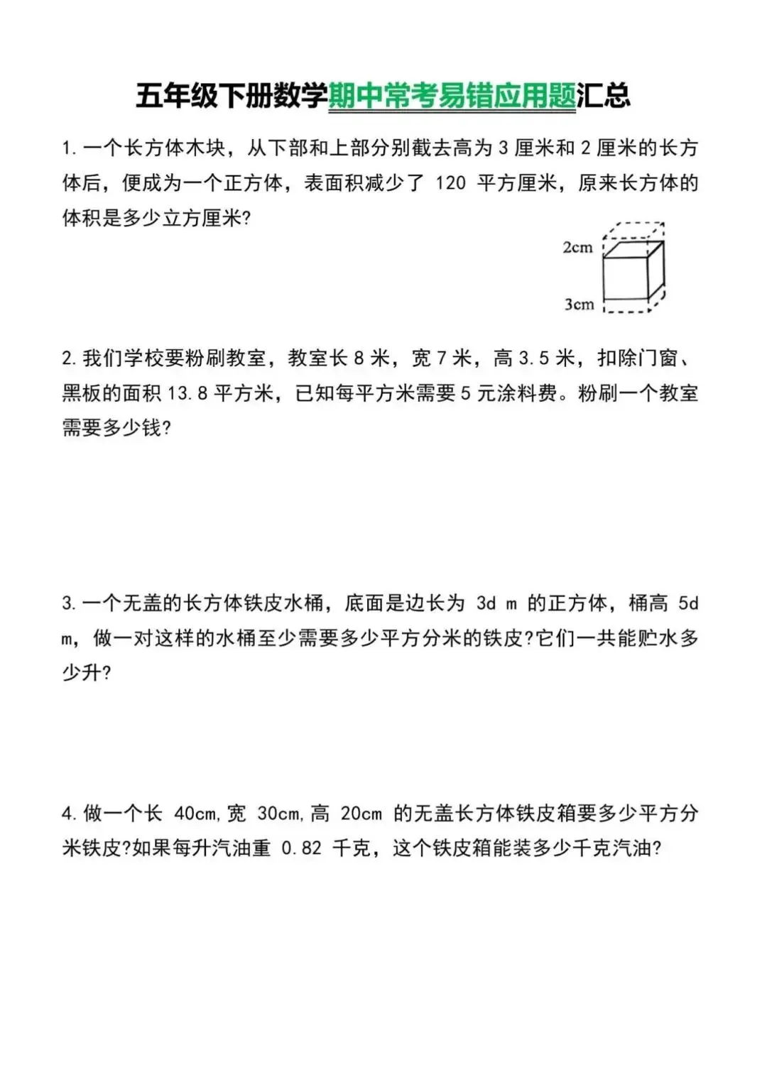 五年级下册数学期中常考易错应用题汇总,电子版可下载打印