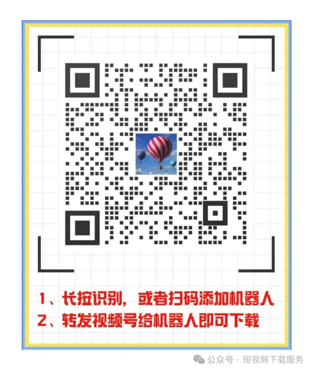 想拥有您的专属视频下载机器人,开启一键视频号视频下载的便捷之旅吗?关注公众号“#短视频下载服务”,关注后将自动推送添加视频下载机器人的二维码。添加「视频下载机器人」,告别视频号的视频怎么下载的烦恼,即刻开启您的视频一键下载之旅吧!