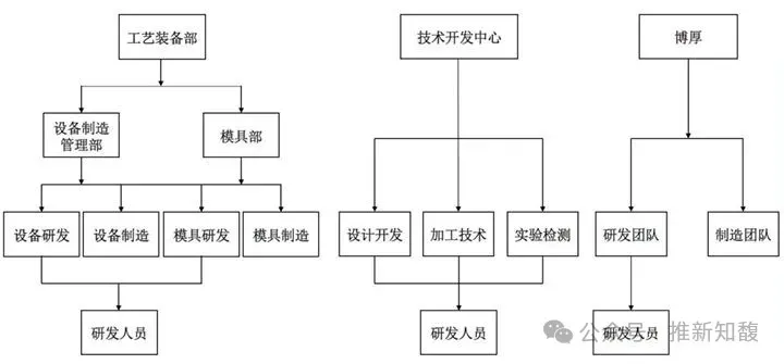 报告期内,公司研发活动分为工艺与装备研发、产品及应用方案研发,其中,工艺与装备研发由工艺装备部负责,产品及应用方案研发由技术开发中心和子公司博厚负责。上述部门的组织结构图如下: