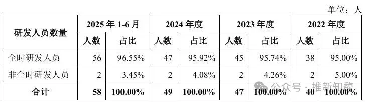 如上表所示,公司平均研发人员人数分别为40人、47人、49人和58人,其中全时研发人员占比均在95%以上。报告期内,上述两名非全时研发人员的实际研发工时占比均达到60%以上。对于两名非全时研发人员,基于其工时记录,其薪酬已严格按照研发工时占比在研发费用与制造费用之间进行分摊核算,会计处理准确。
