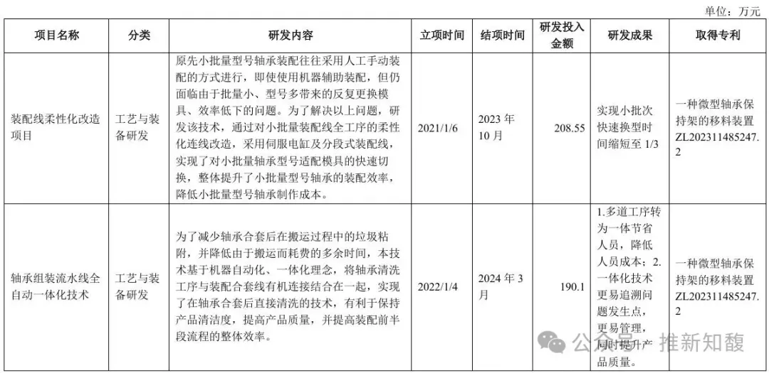 通过持续的研发投入,公司在生产工艺方面有丰厚的技术积累,使产品的关键性能指标达到了较高水平,目前公司已成长为微型轴承制造细分行业头部企业。