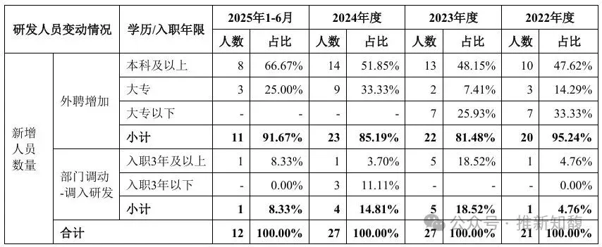 从人员构成来看,新增研发人员中80%以上来自市场化招聘,具有本科及以上学历人员占比呈上升趋势,专业背景覆盖机械工程、数控技术、材料与化工等核心领域,与公司研发方向契合度较高。