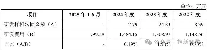 根据申请文件,报告期各期,发行人研发费用分别为1,148.56 万元、1,308.97 万元、1,484.15 万元、799.58 万元,研发费用率低于可比公司,存在部分研发样机转固情况。