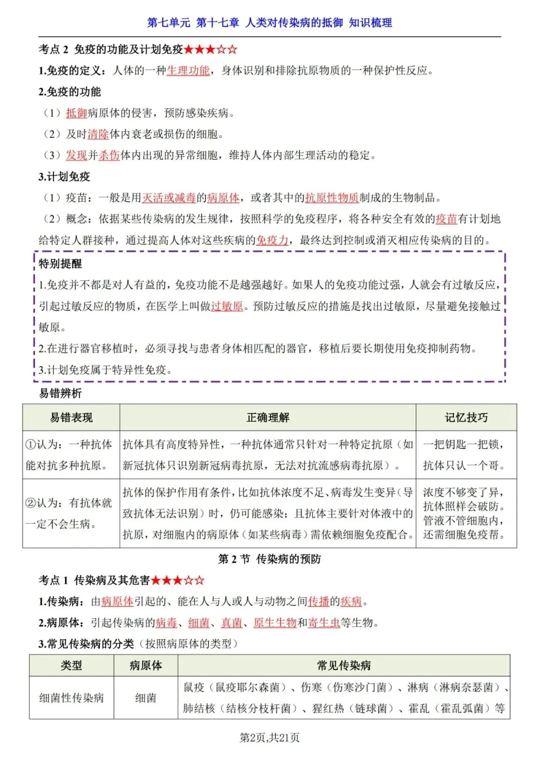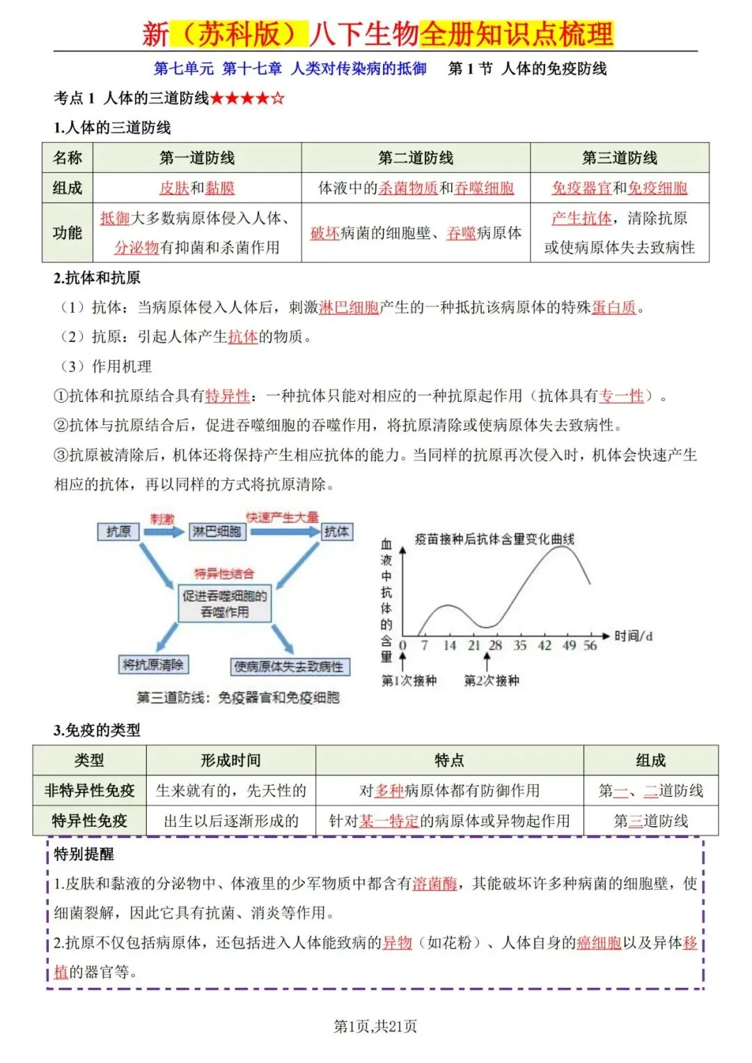 2026苏科版八下生物干货|21页全册知识点梳理,电子版可打印,吃透稳提分