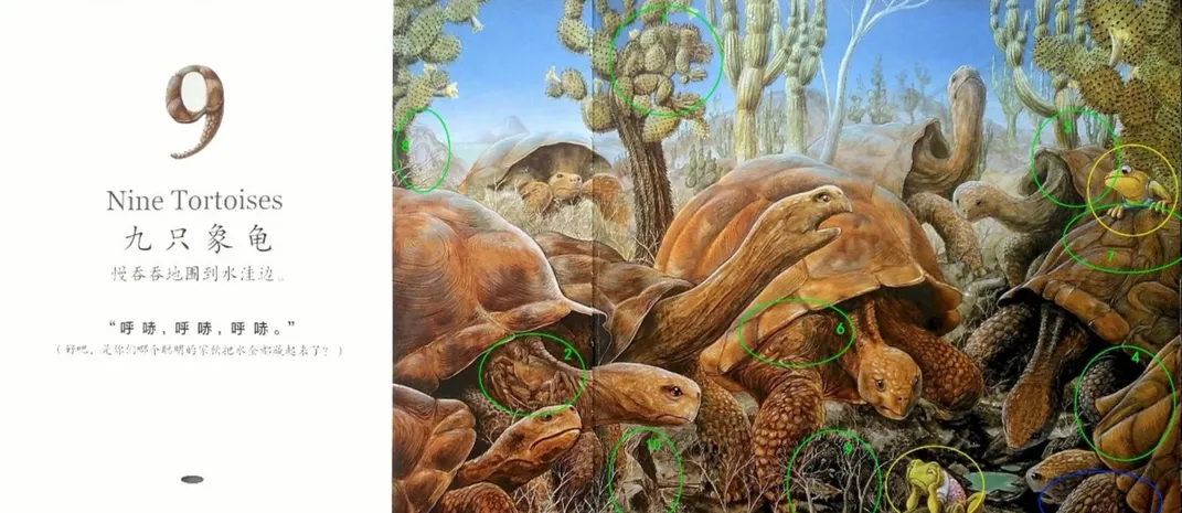 九只象龟(Nine Tortoises)慢吞吞地围到水洼边。“呼 哧 ,呼 哧 ,呼 哧 。”(好吧,是你们哪个聪明的家伙把水全部藏起来了?)