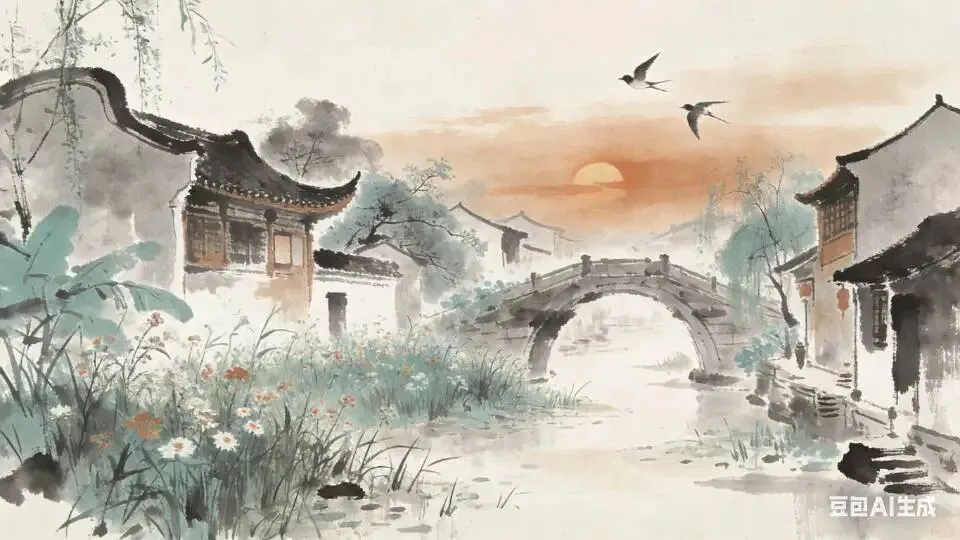 此阕以丰子恺先生漫画“六朝旧时明月”为题,取意于刘禹锡《乌衣巷》之诗境。画意苍茫,诗心寥远,今试以词笔追摹其境,感怀往昔,怅望今时。