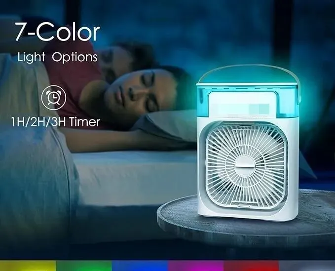 【夏日清凉神器】5孔喷雾+七彩灯光,这款多功能桌面风扇让你凉爽一整夏!USB充电超静音,定时关机更贴心