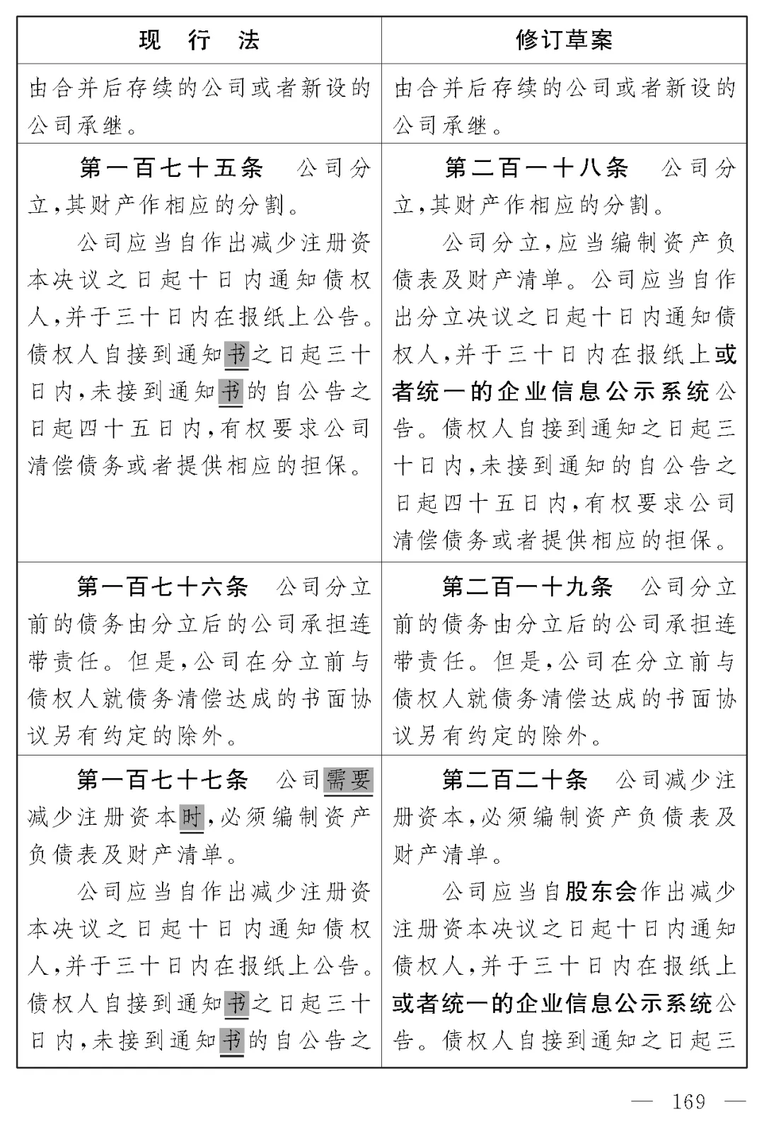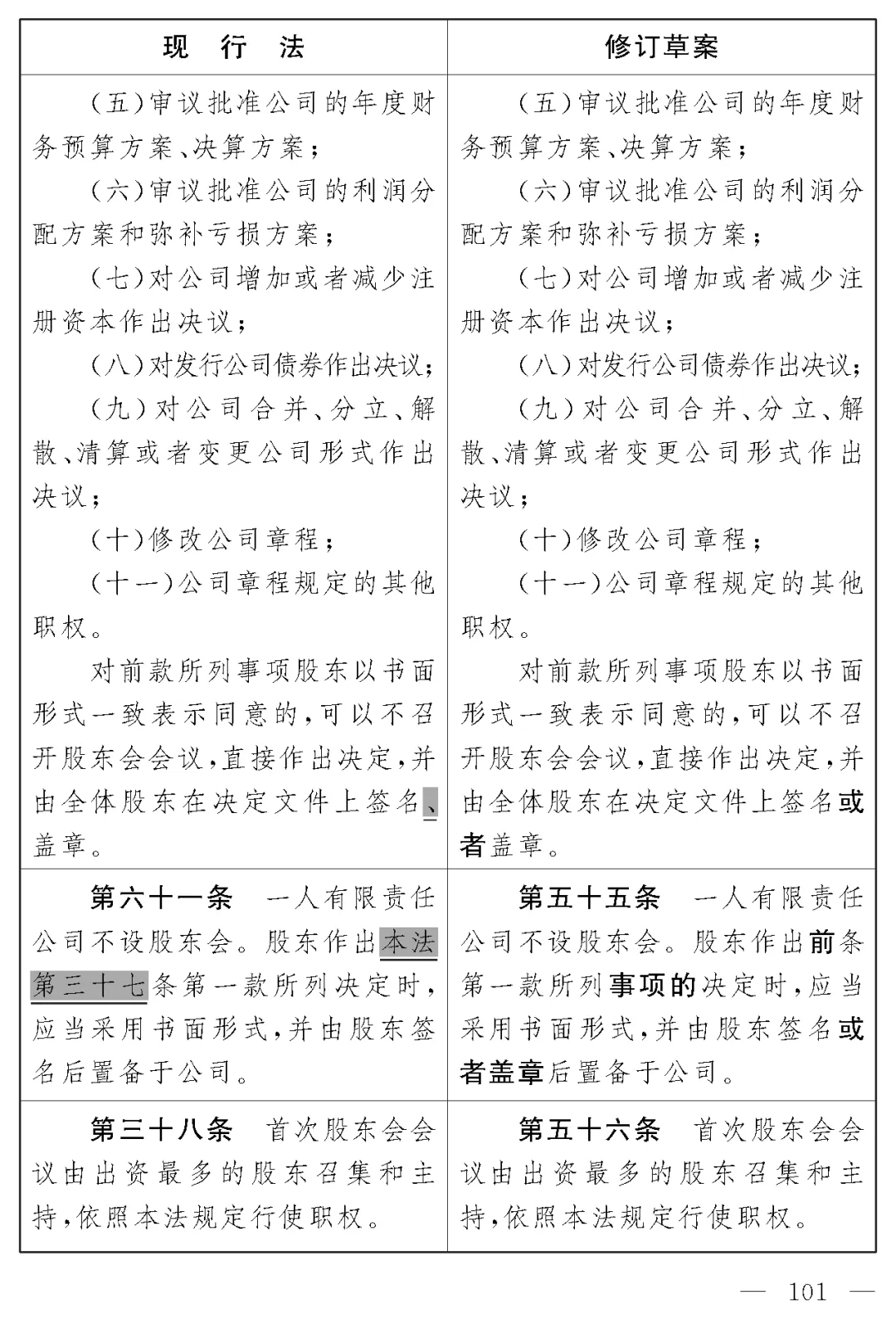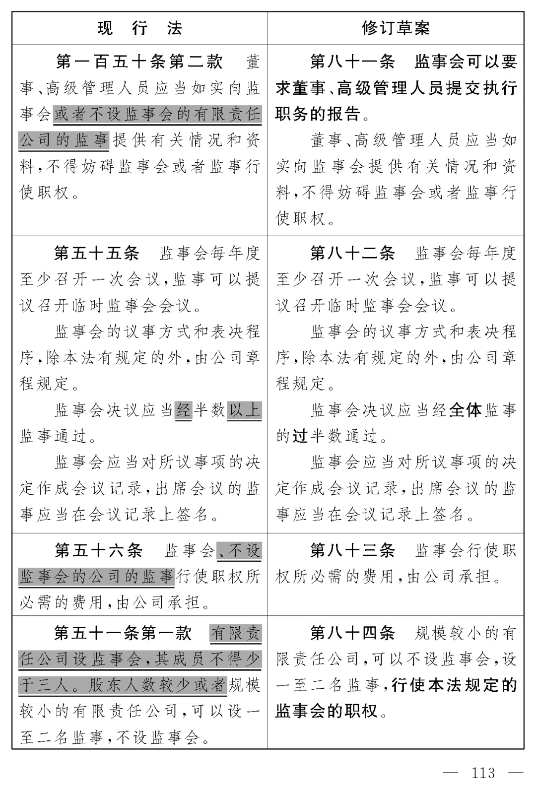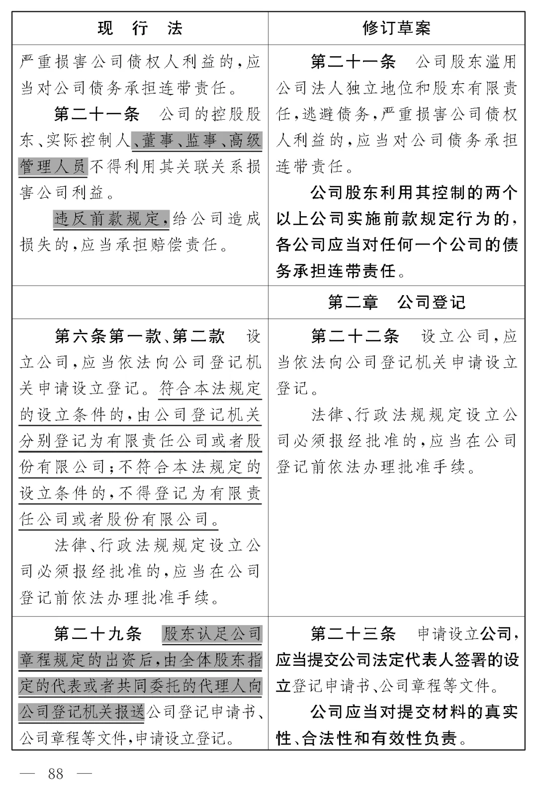 公司法修订 | 附公司法(修订草案)说明及修改前后对照表