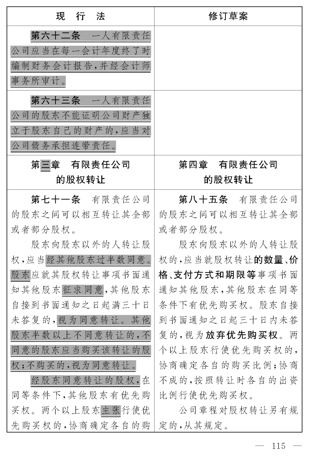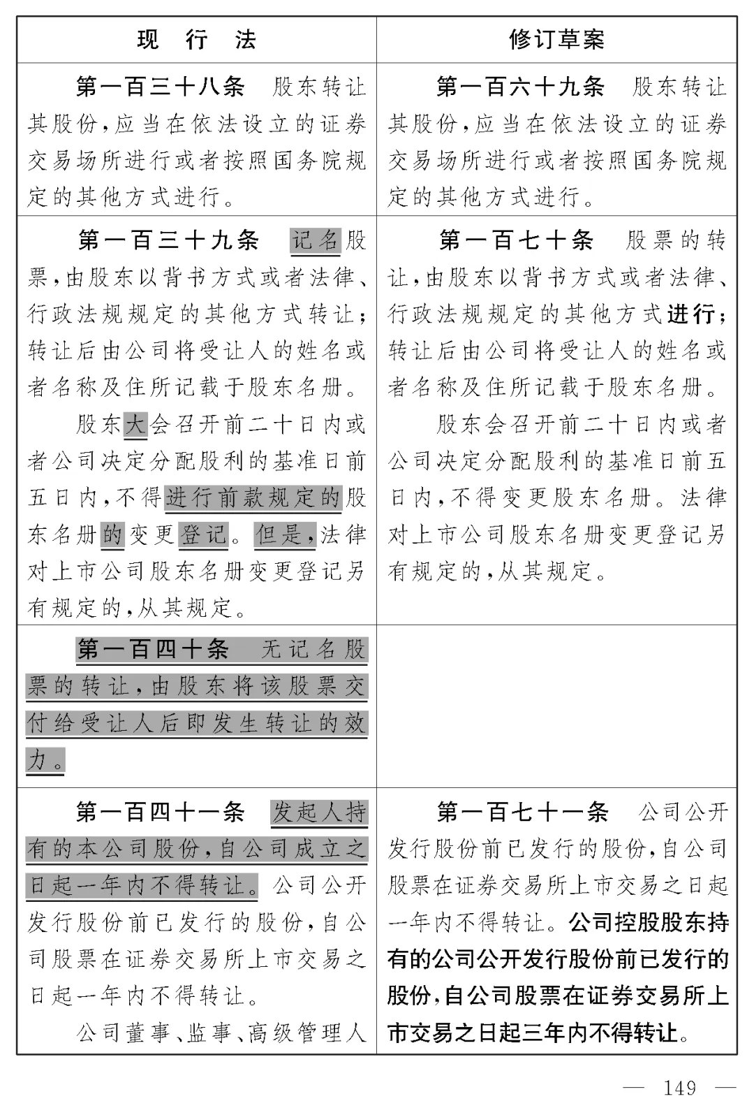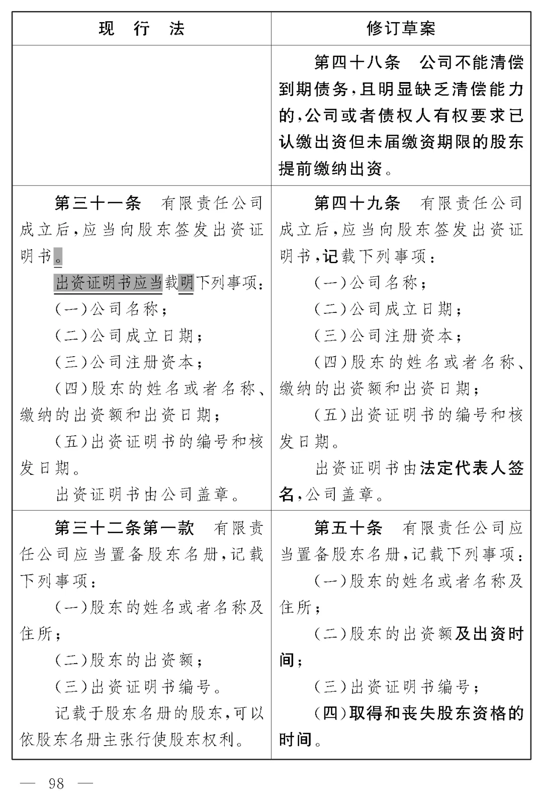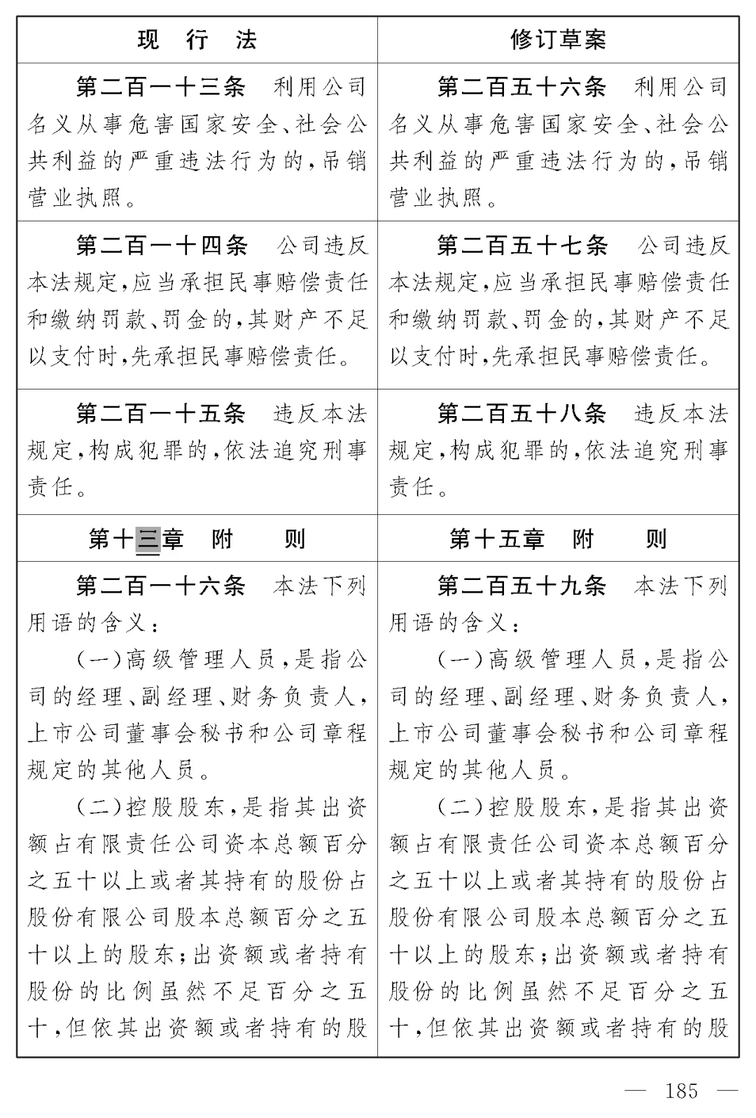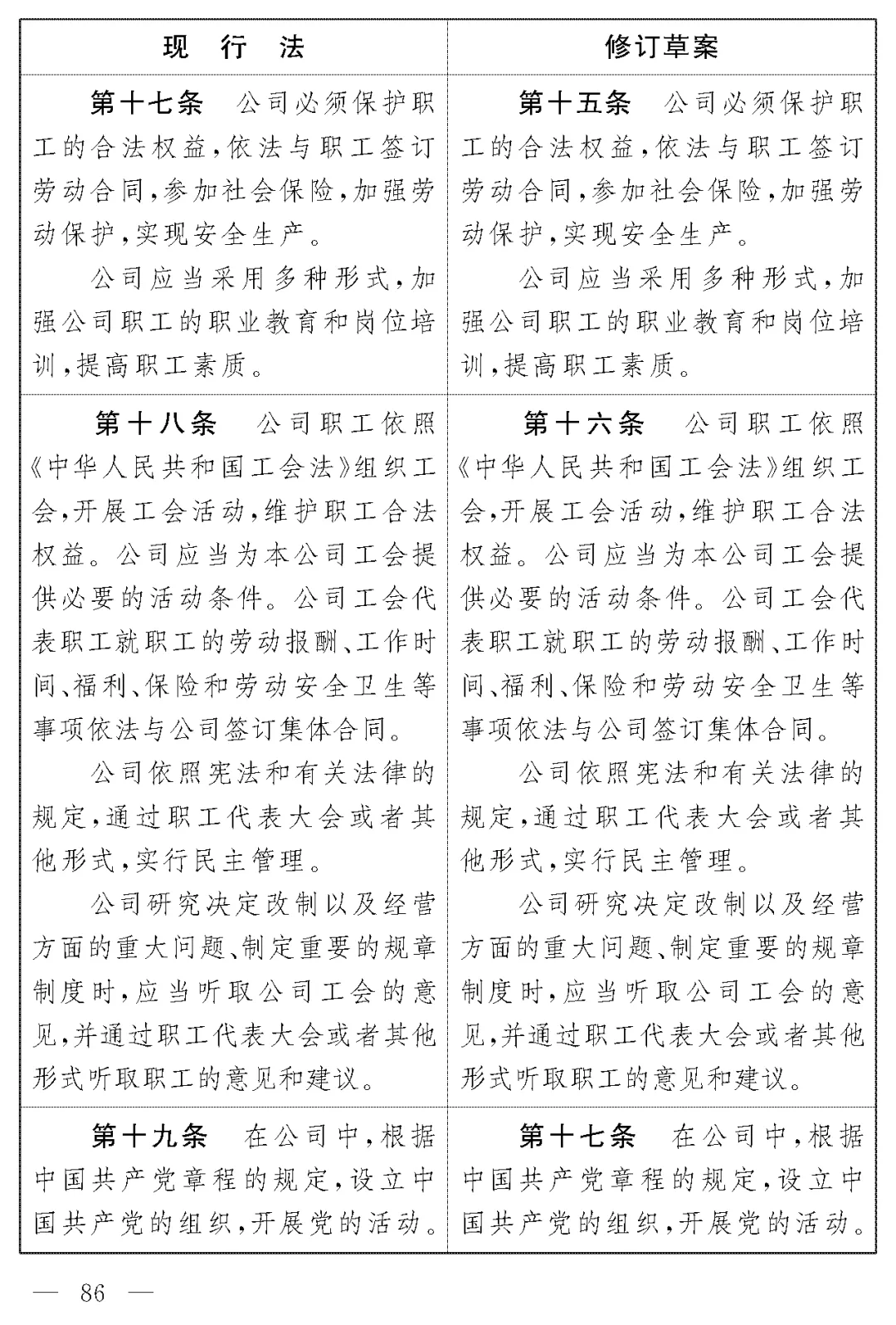 公司法修订 | 附公司法(修订草案)说明及修改前后对照表