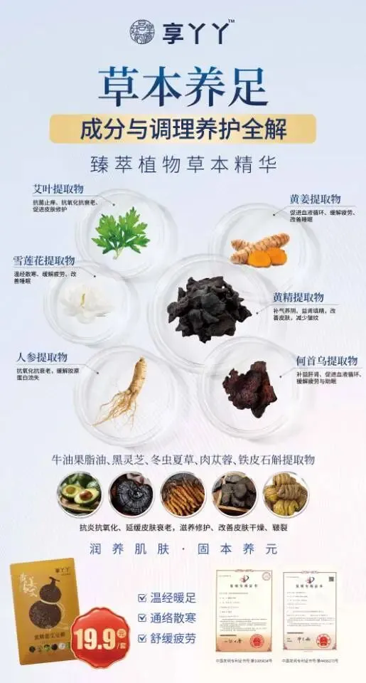 这款足膜的配方堪称一绝。老姜具有强大的驱寒功效,能将体内的寒气一点点逼出;艾草和雪莲则专注于温经通络,让身体的气血更加顺畅;黄精、人参等珍贵药材则发挥益肾补血的作用,为身体补充满满的精气。几大功效协同作战,让你在享受足疗的同时,轻松实现寒气排出、精气补足的养生目标。