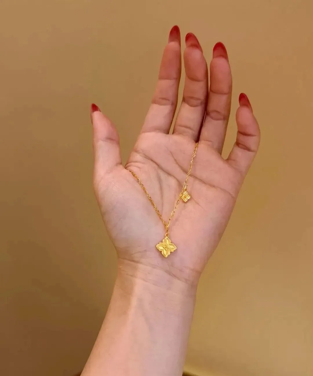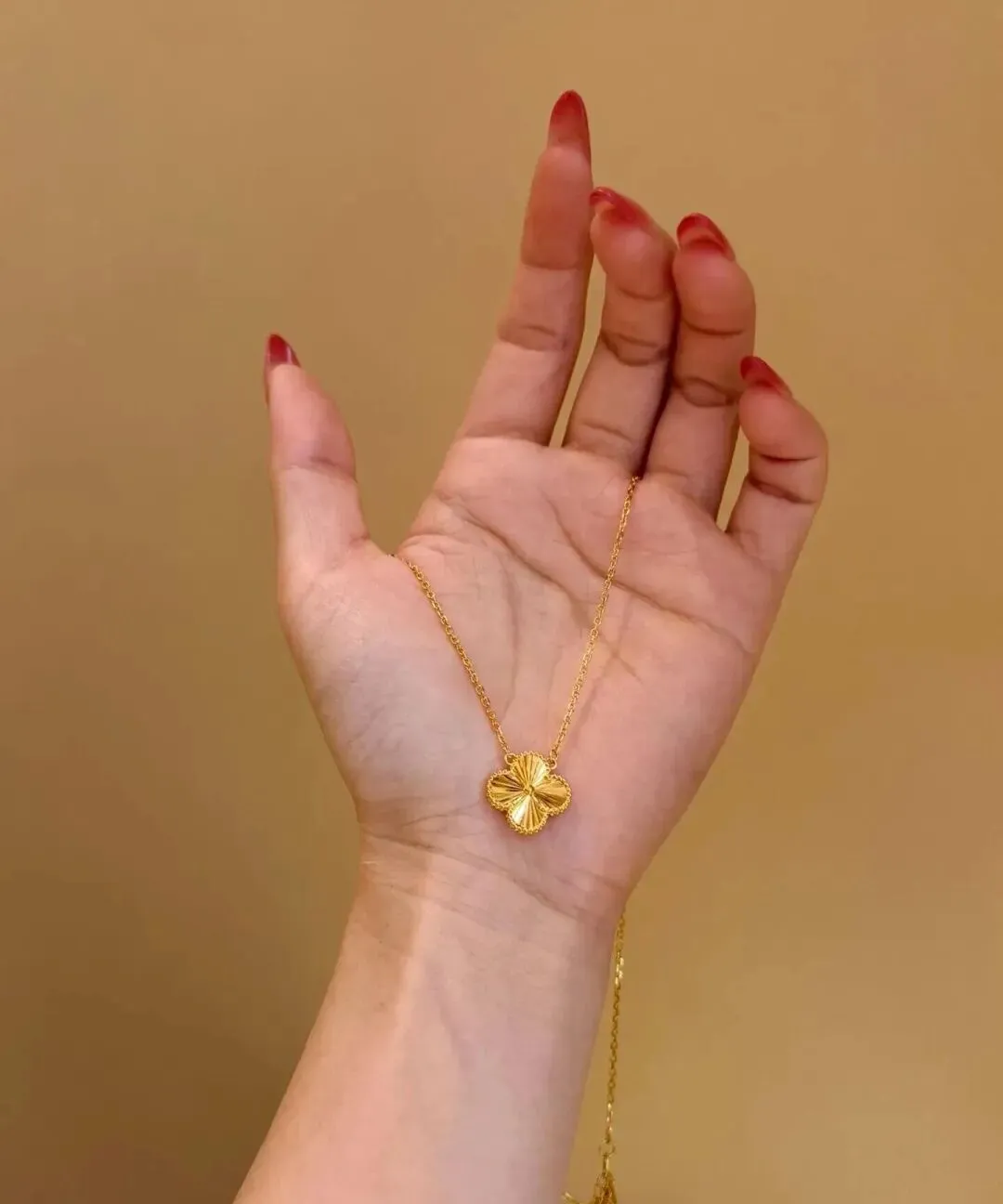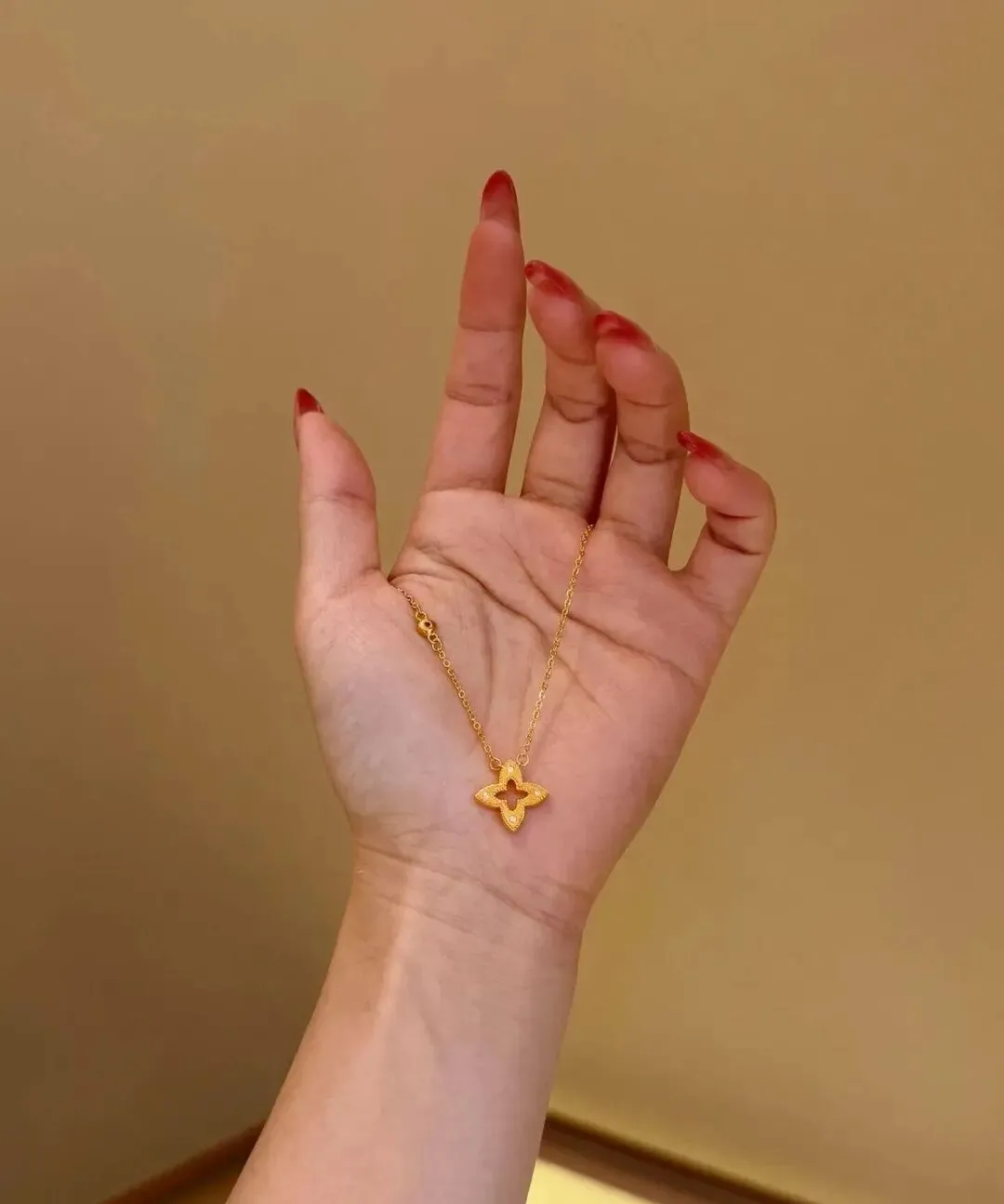 我第一次买这种小众设计的黄金项链 其实是去年过年的时候 当时就想着给自己买点东西 犒劳一下辛苦工作一年的自己 逛了好几家店 最后在一个不太起眼的柜台看到了一条四叶草的项链 造型特别精致 表面还有纹理 在灯光下闪闪的 我一问价格 两千多 当时心里还有点犹豫 觉得这个钱够我买好几件衣服了