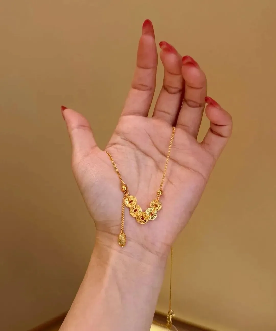 昨天闺蜜来我家玩 一眼就看中了我挂在首饰架上的那几条项链 拿起来一条条试 边试边问我在哪买的 我说都是黄金的 她惊讶得不行 说没想到黄金也能这么好看 不是那种土豪暴发户的感觉 反而特别有设计感 ✨