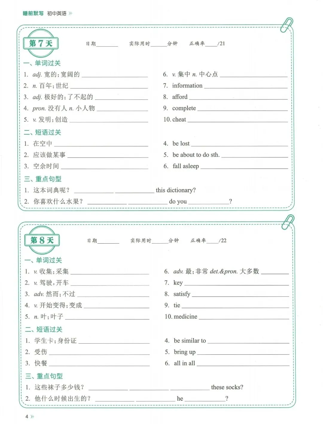 【易蓓-睡前默写】(2026版)初中英语睡前默写,包括七年级、八年级、九年级和中考的“单词 · 短语 · 句型”睡前默写,适合每个年级和2026年中考学生。PDF高清电子版,网盘免费打包下载哦!