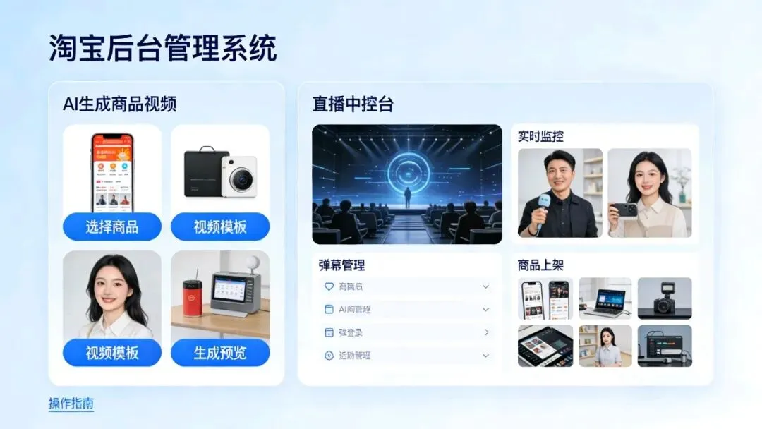 直播全链路AI:智能选品、口播生成、合规审核、数智人主播。