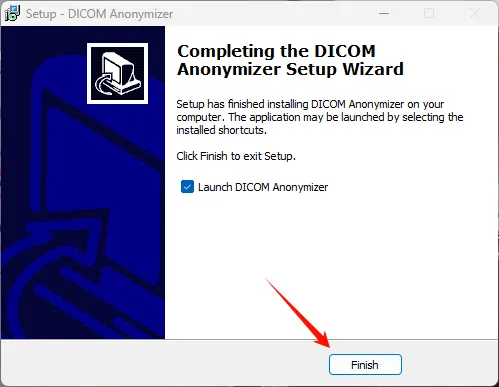 4、安装完成后,取消勾选“Launch DICOM Anonymizer”,并点击“Finish”