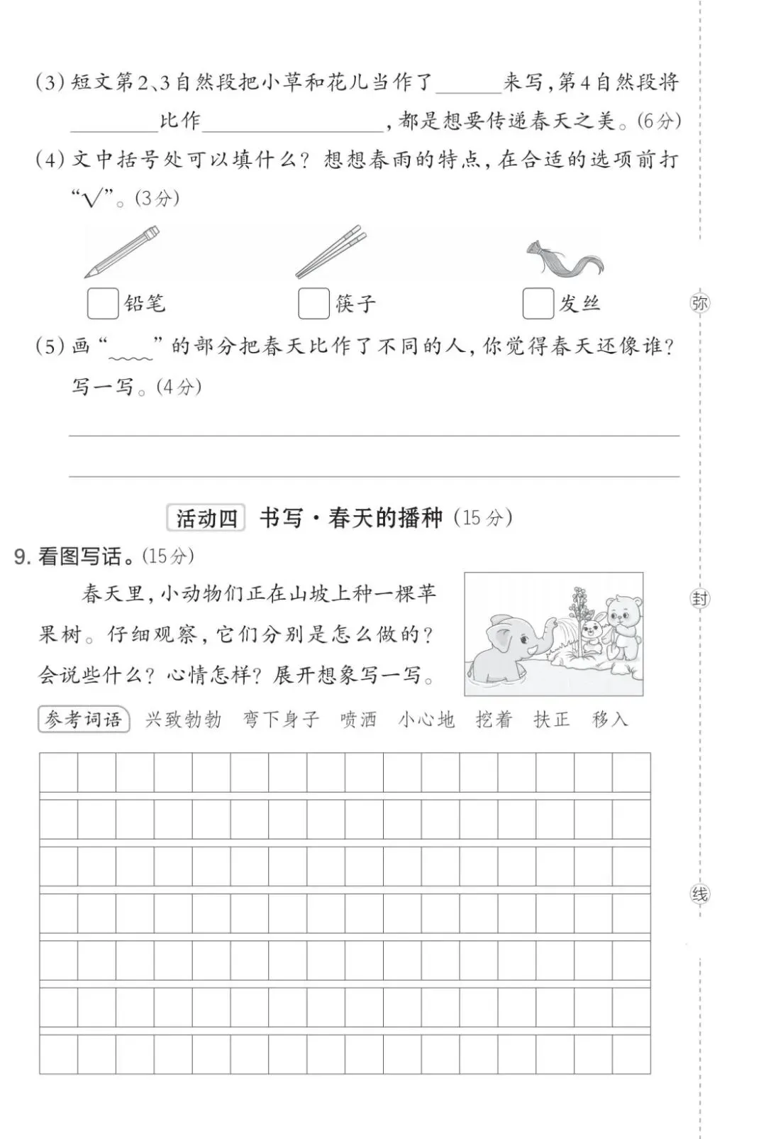 嗨~你好呀!今天给大家分享的是2026年新版二年级下册语文部编版《第一单元综合素养测试卷》电子版可打印