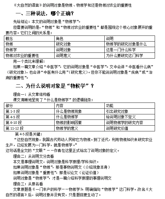 【第380期】《大自然的语言》的说明对象与说明事理,你分得清吗? 点击蓝字,关注我们 《大自然的语言》的 说明对象与说明事理, 你能分清吗? 01 《大自然的语言》说明对象辨析 02 《大自然的语言》说明事理辨析