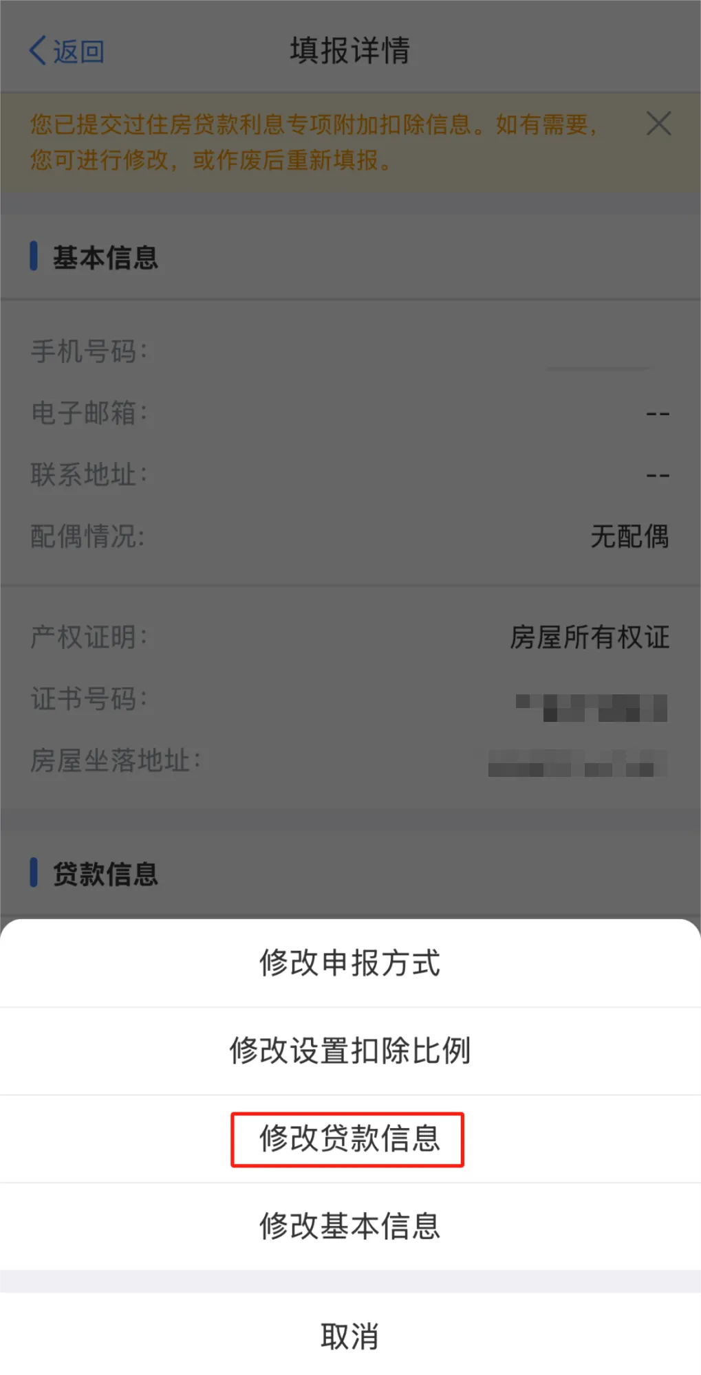 第五步:选择“修改贷款信息”。
